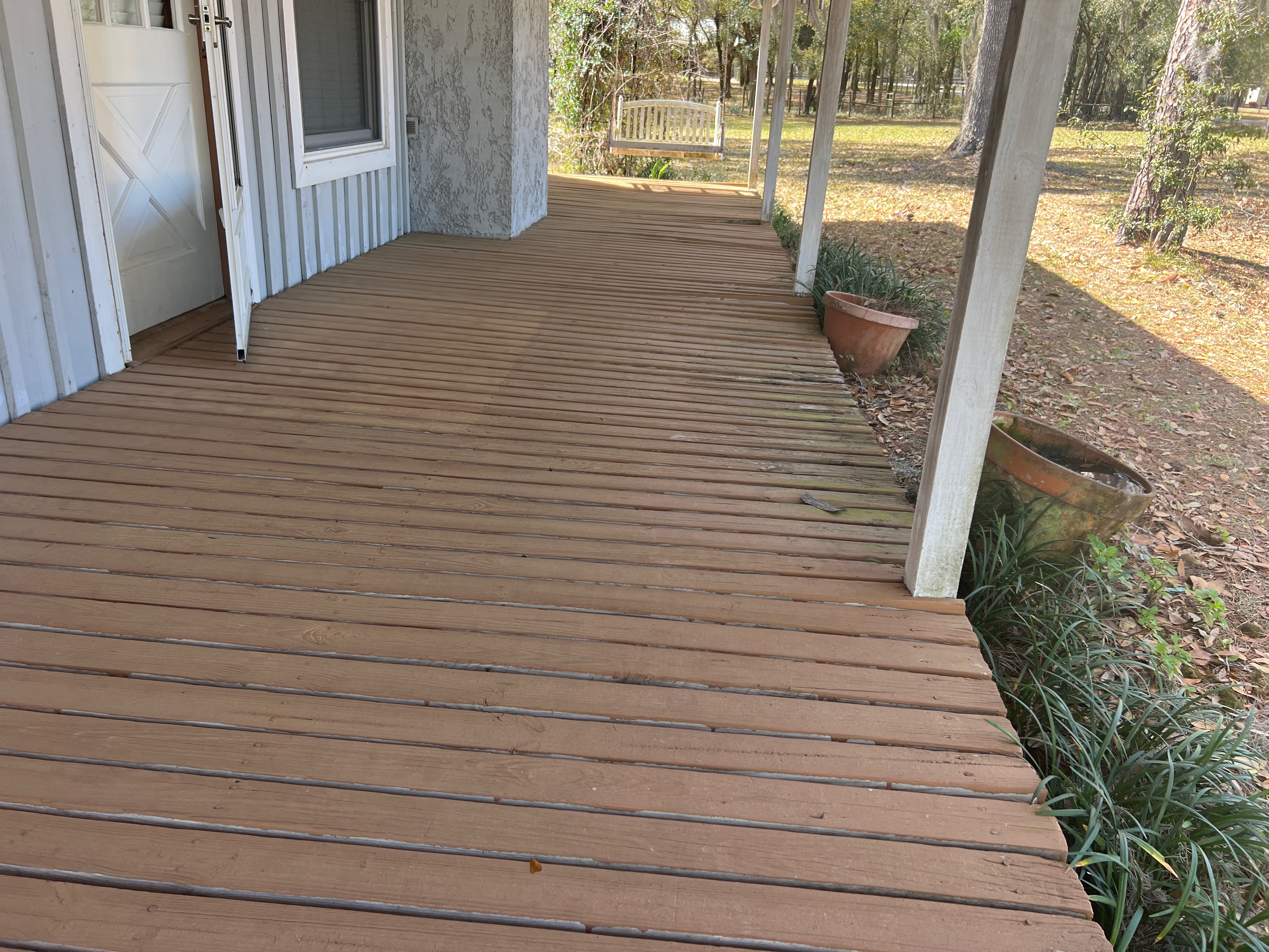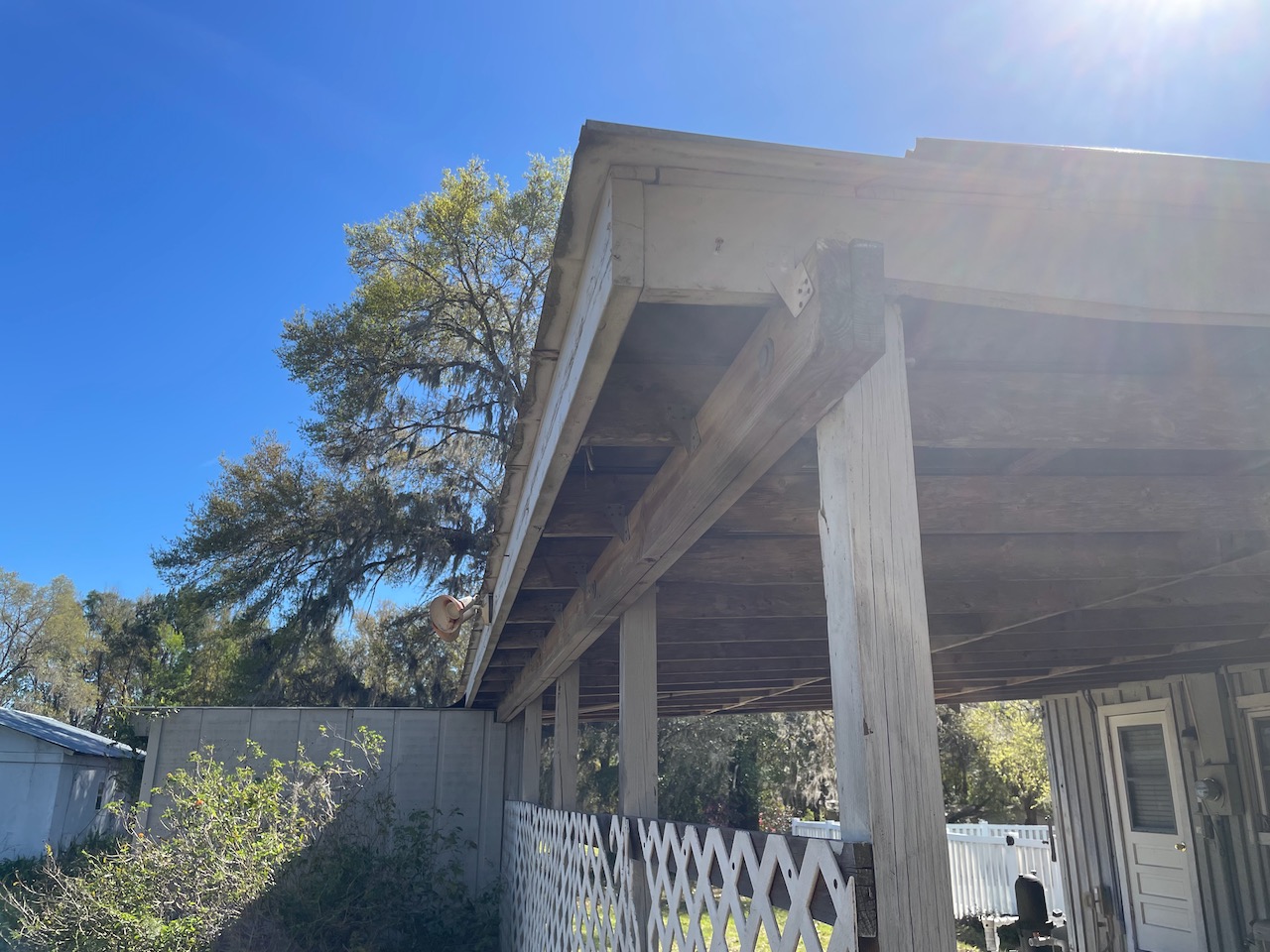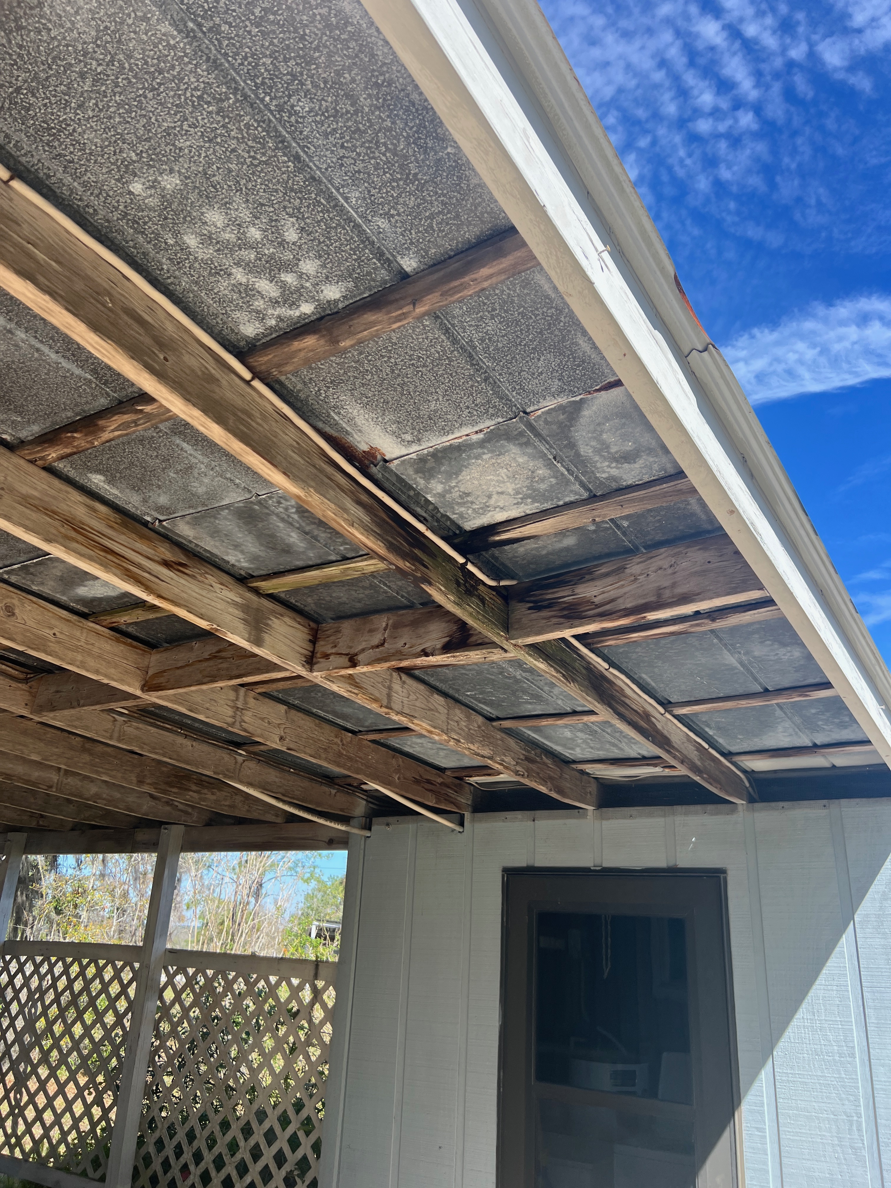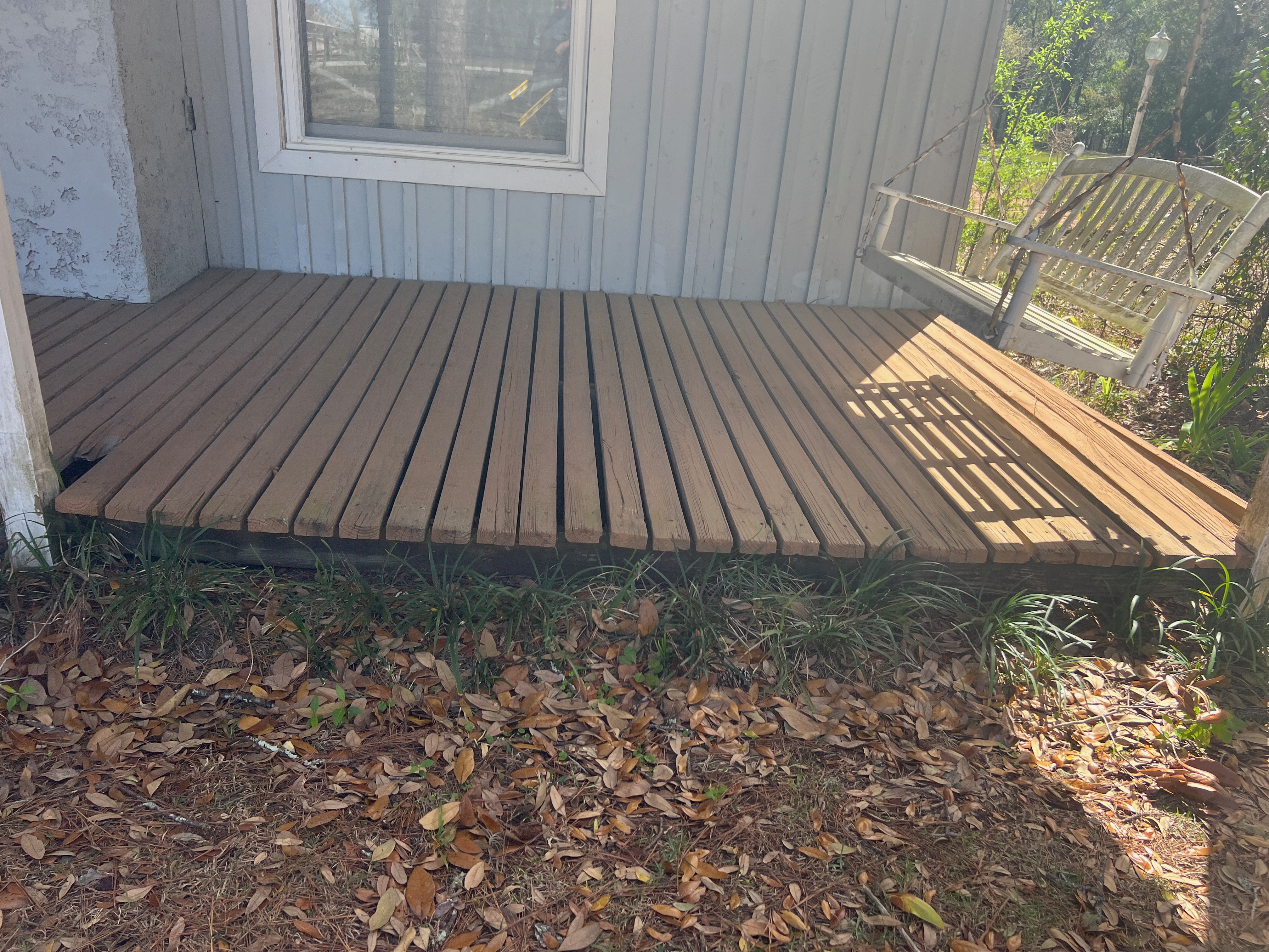 the deck in front has several lose or bowed boards the beam under the front also sags both on roof but also under the deck