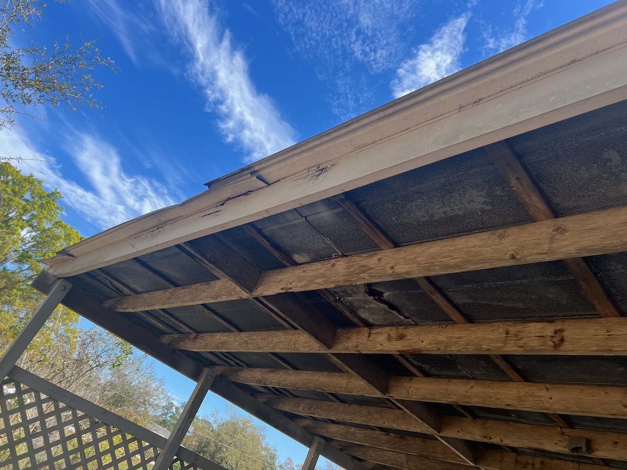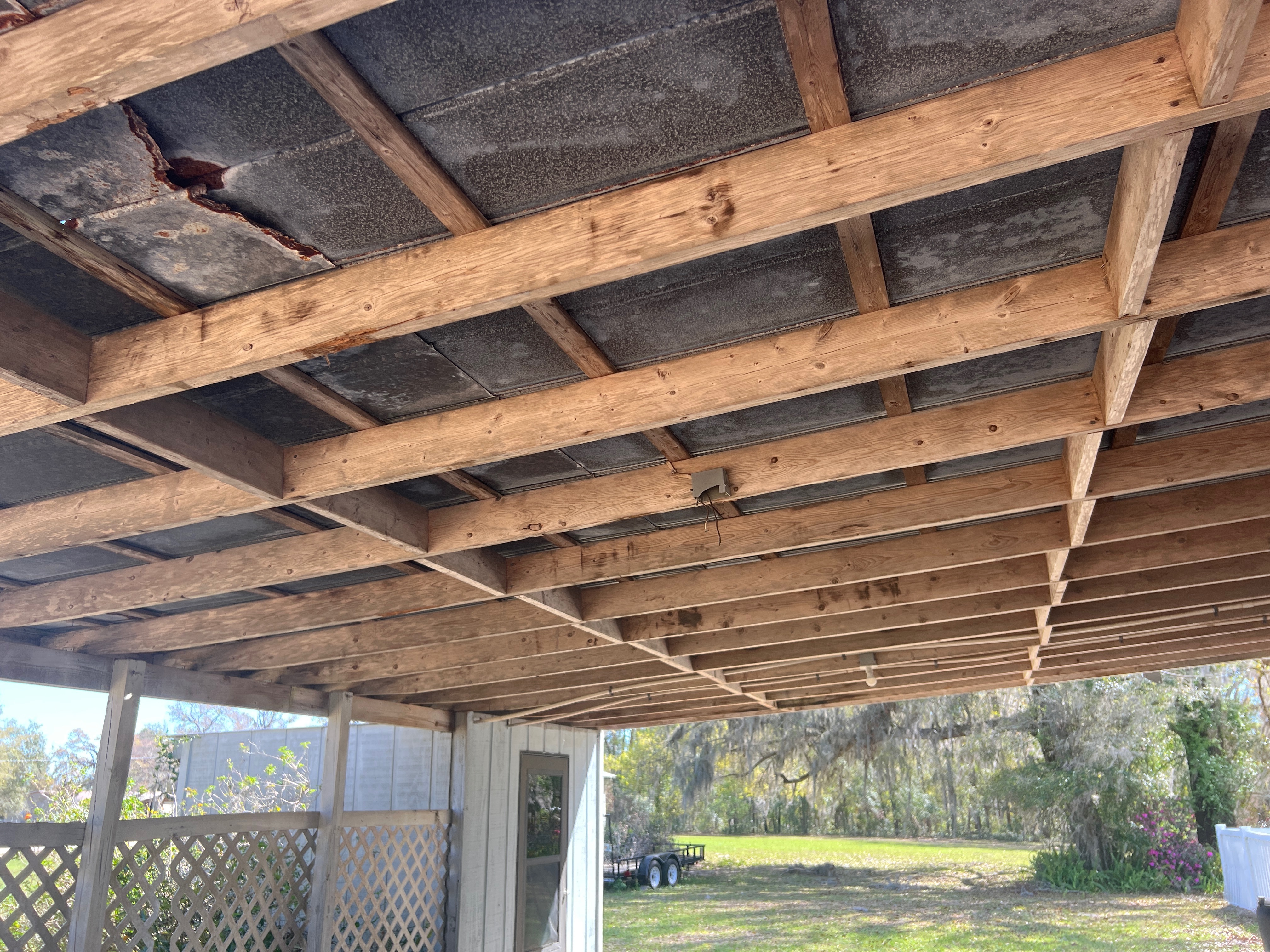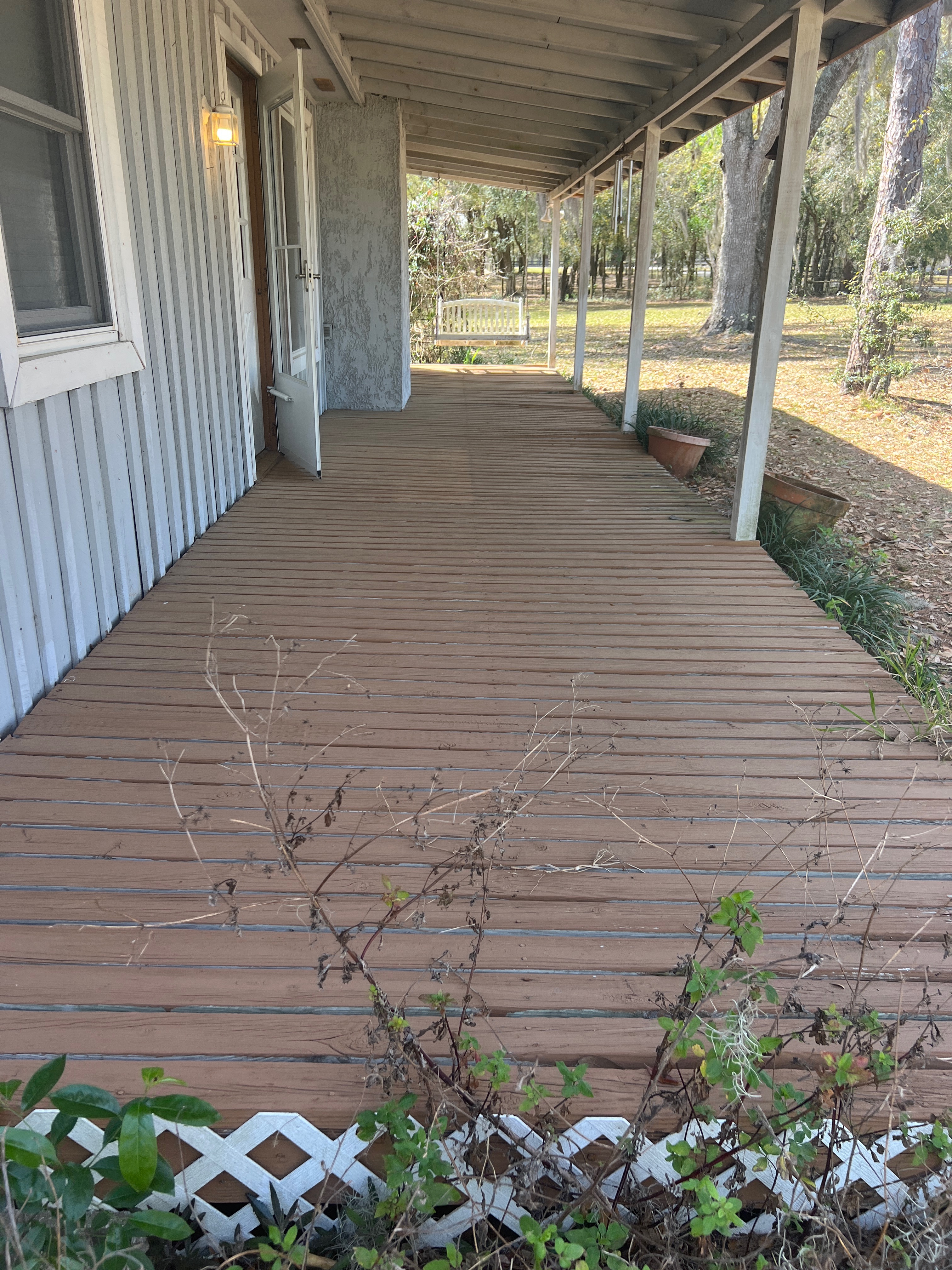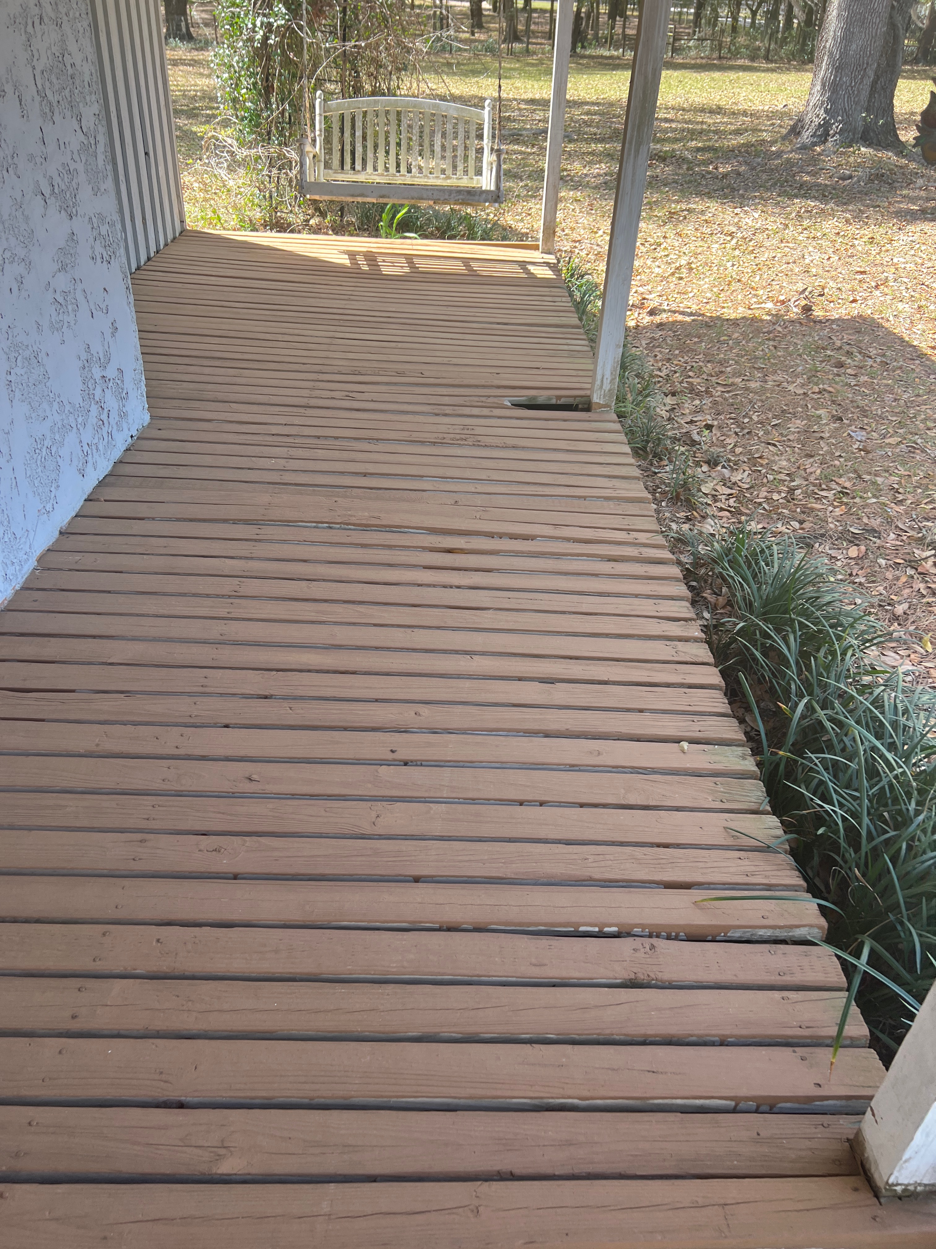the deck in front has several lose or bowed boards the beam under the front also sags both on roof but also under the deck
