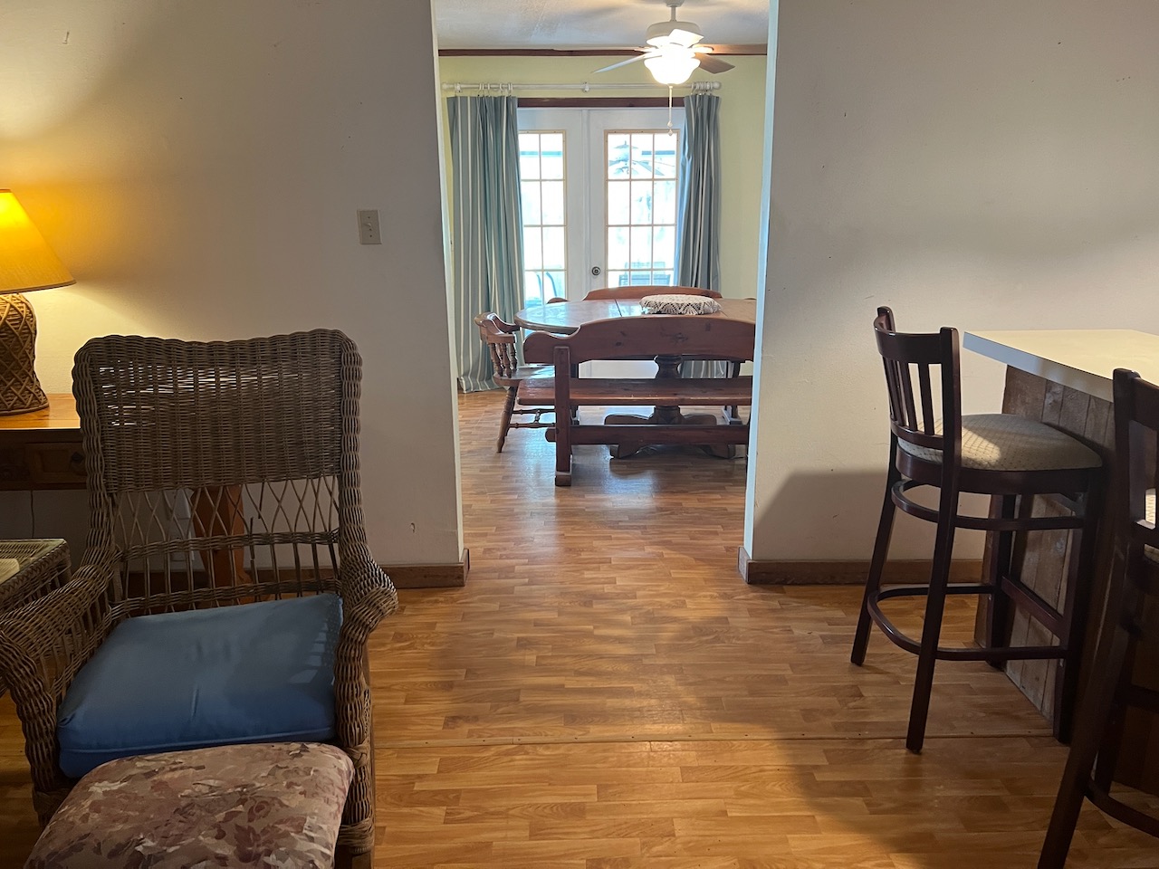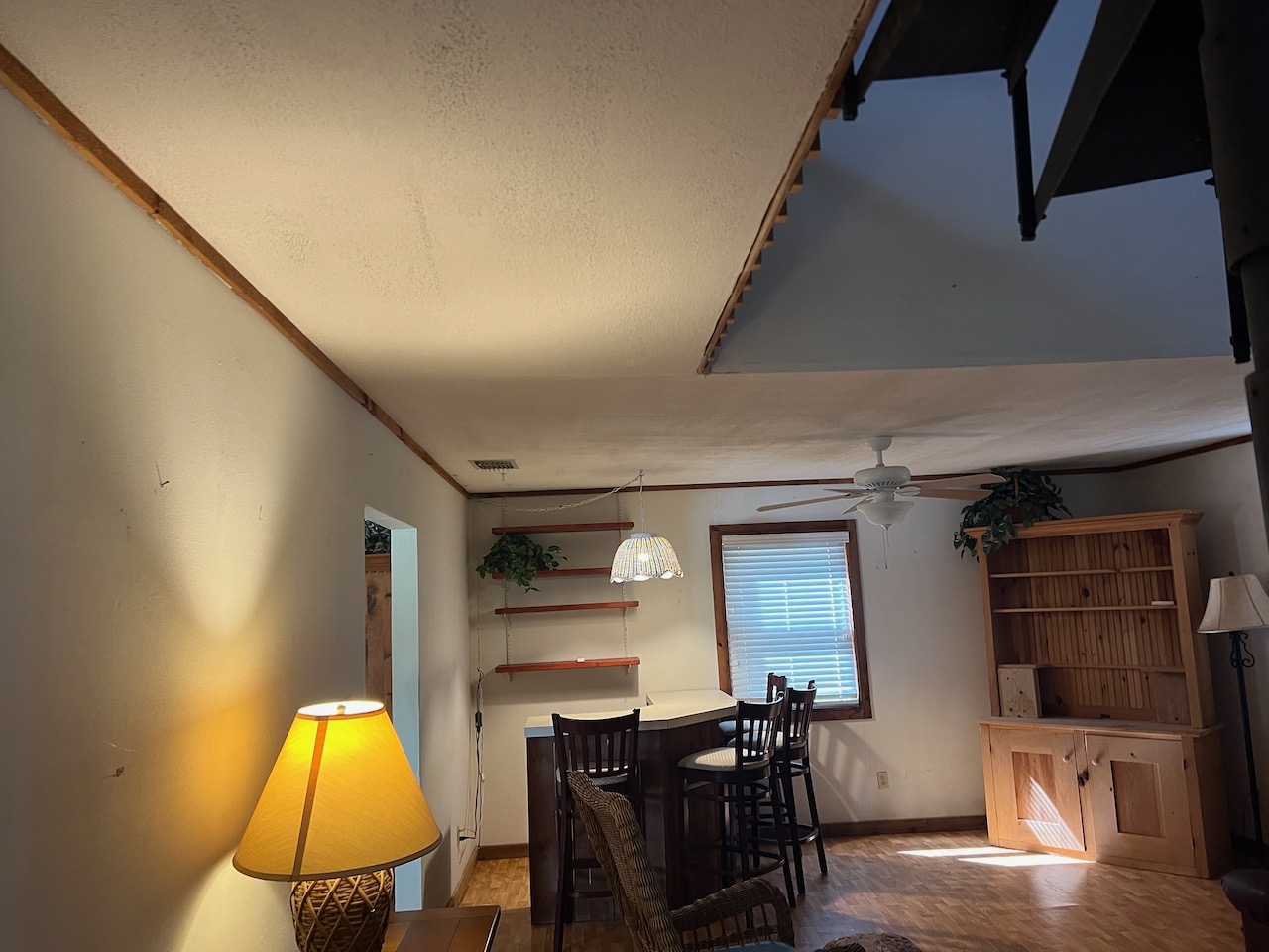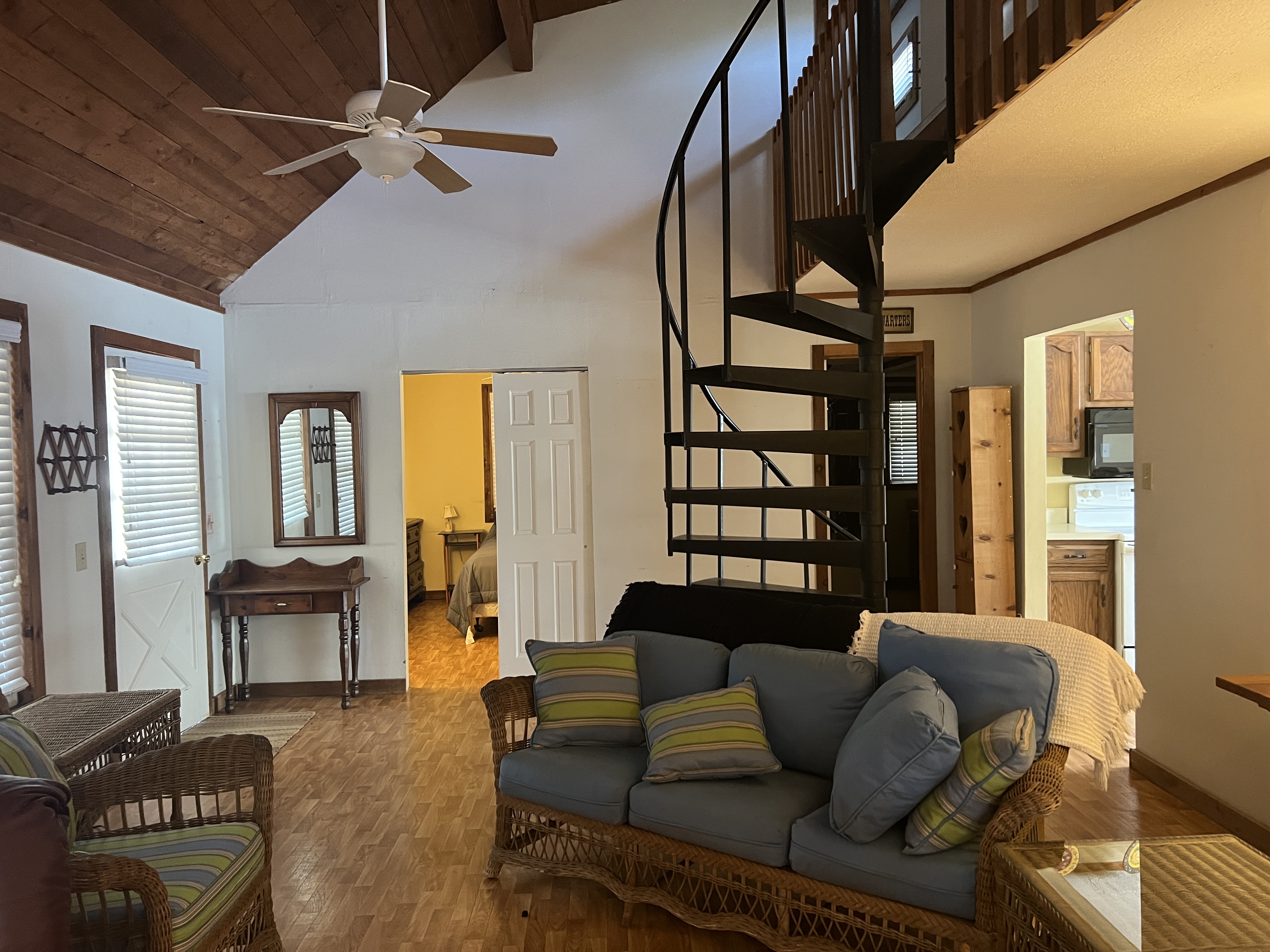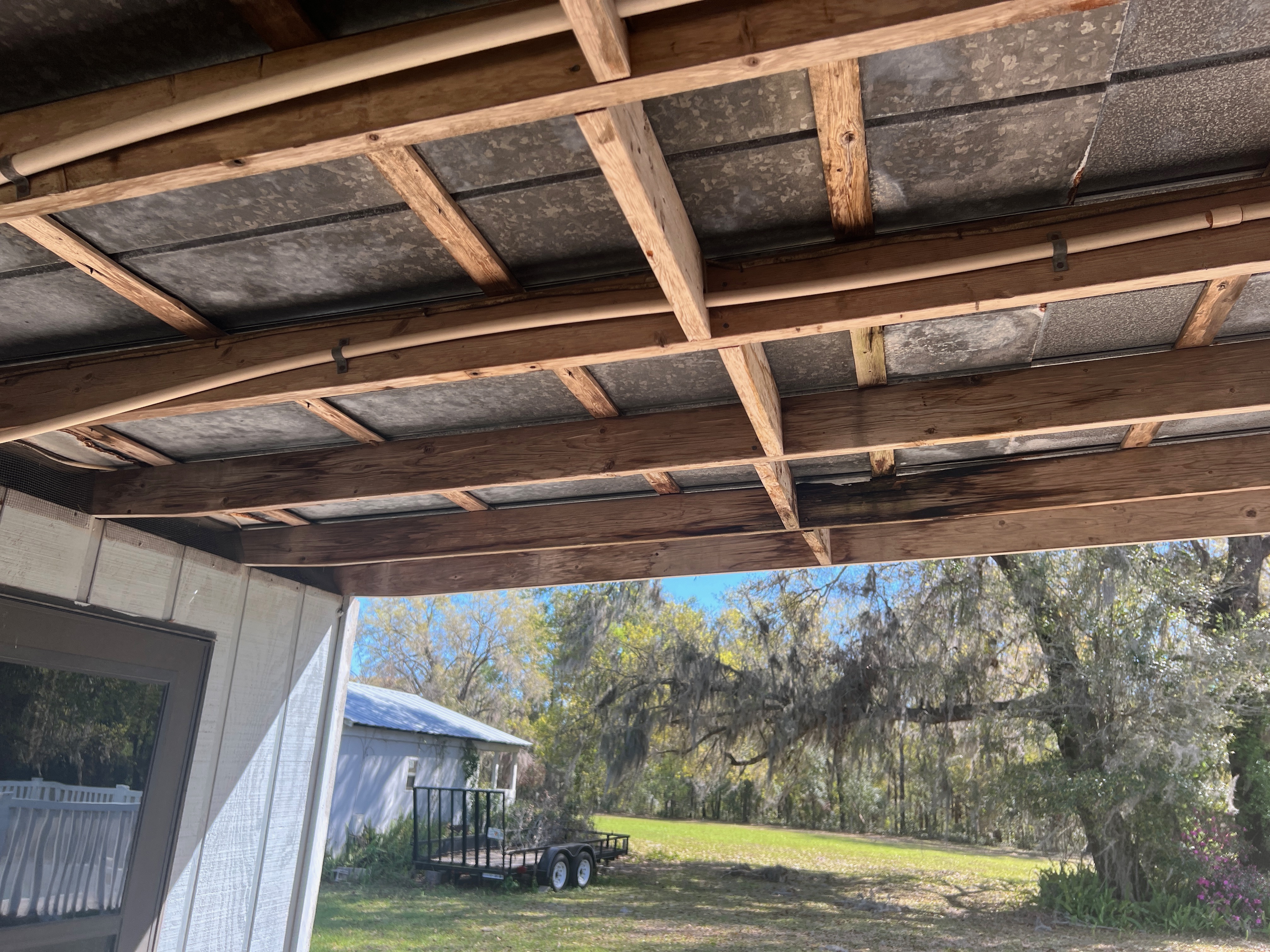 the deck in front has several lose or bowed boards the beam under the front also sags both on roof but also under the deck