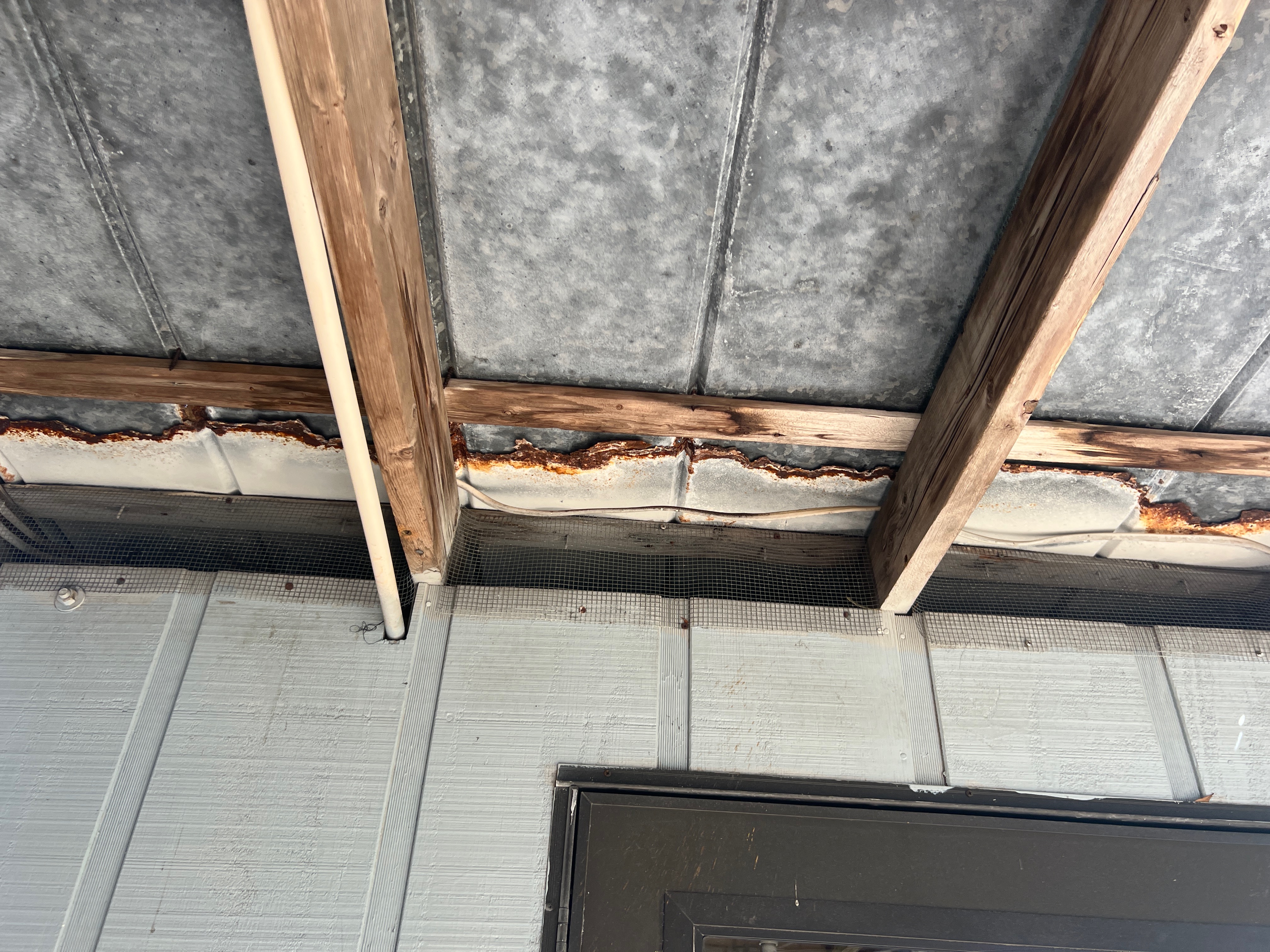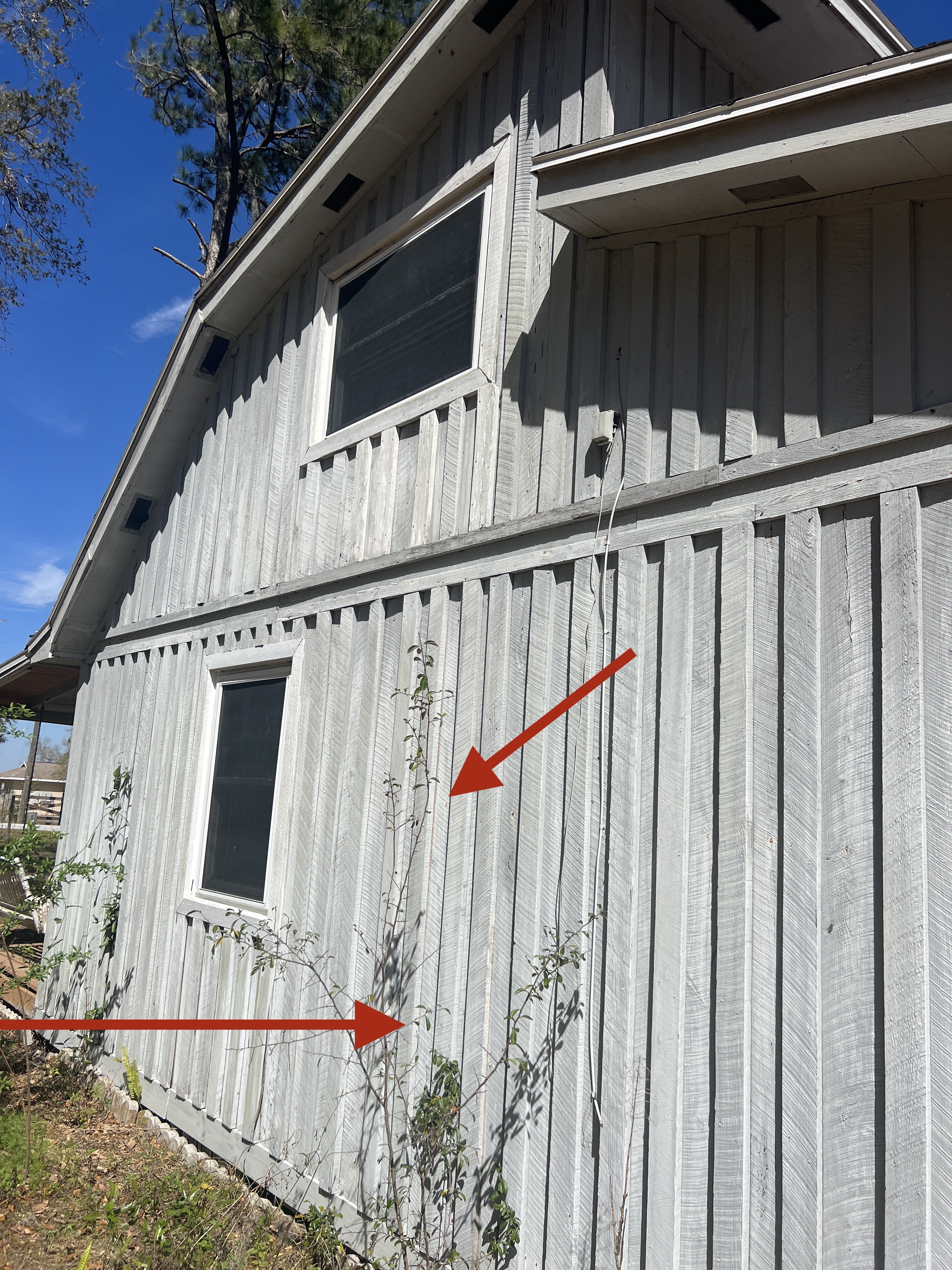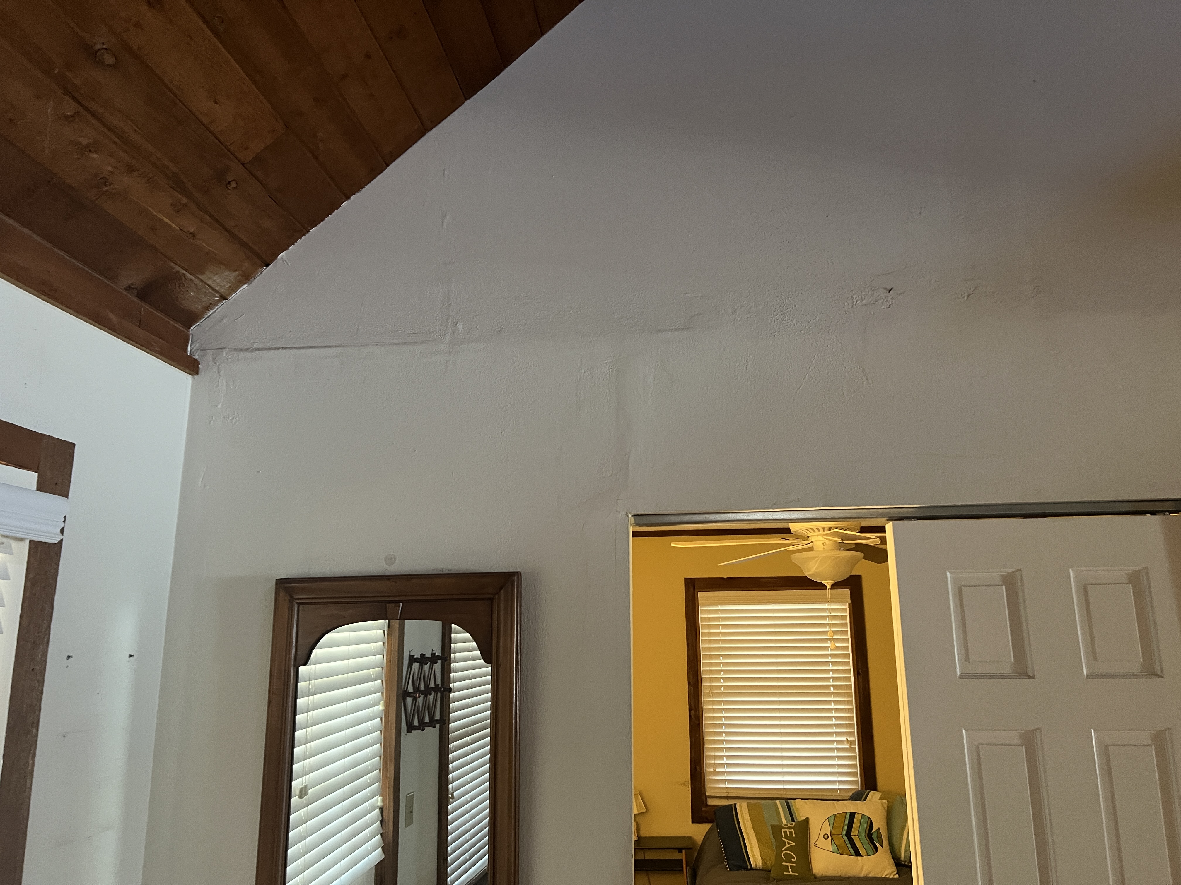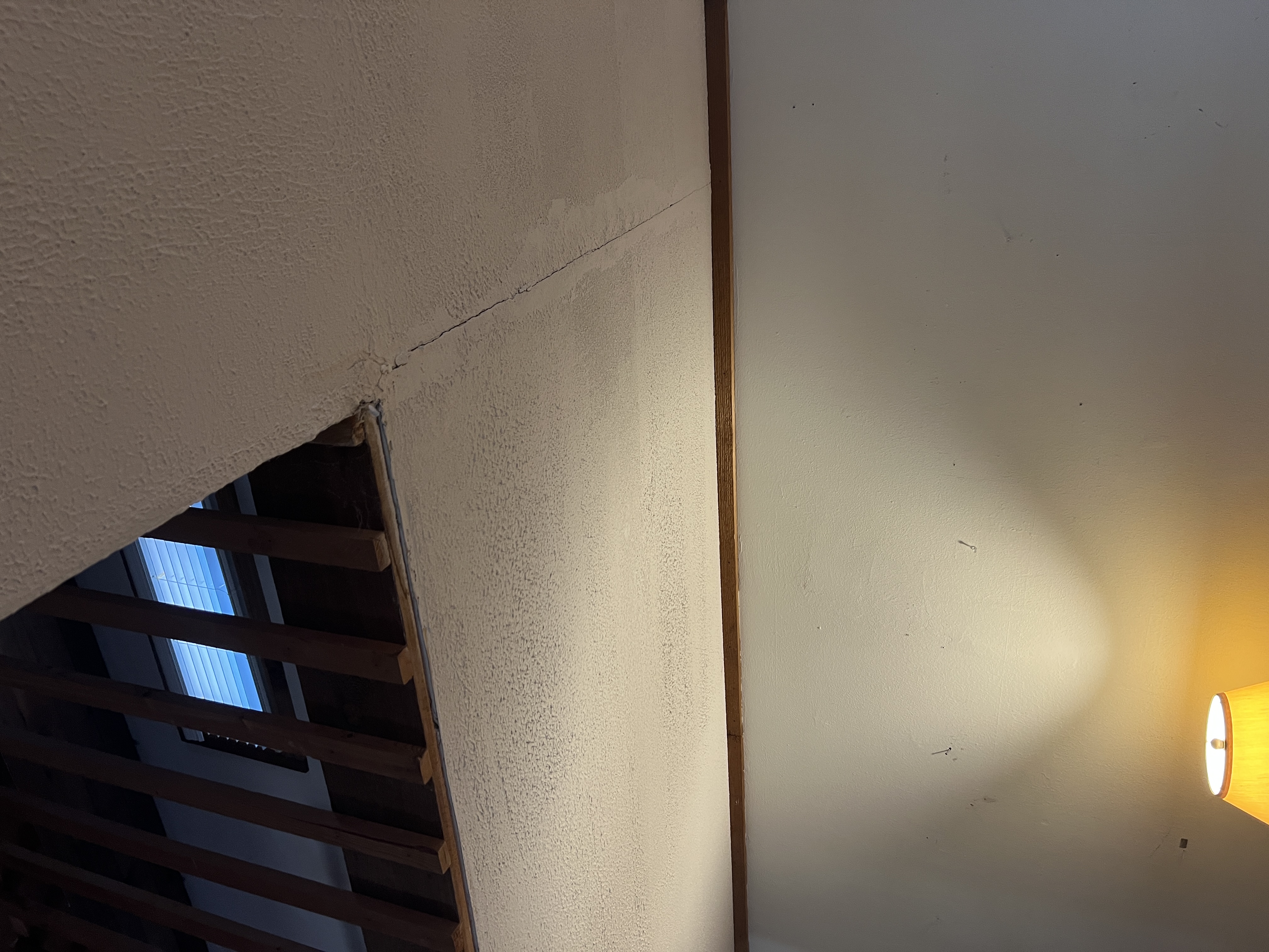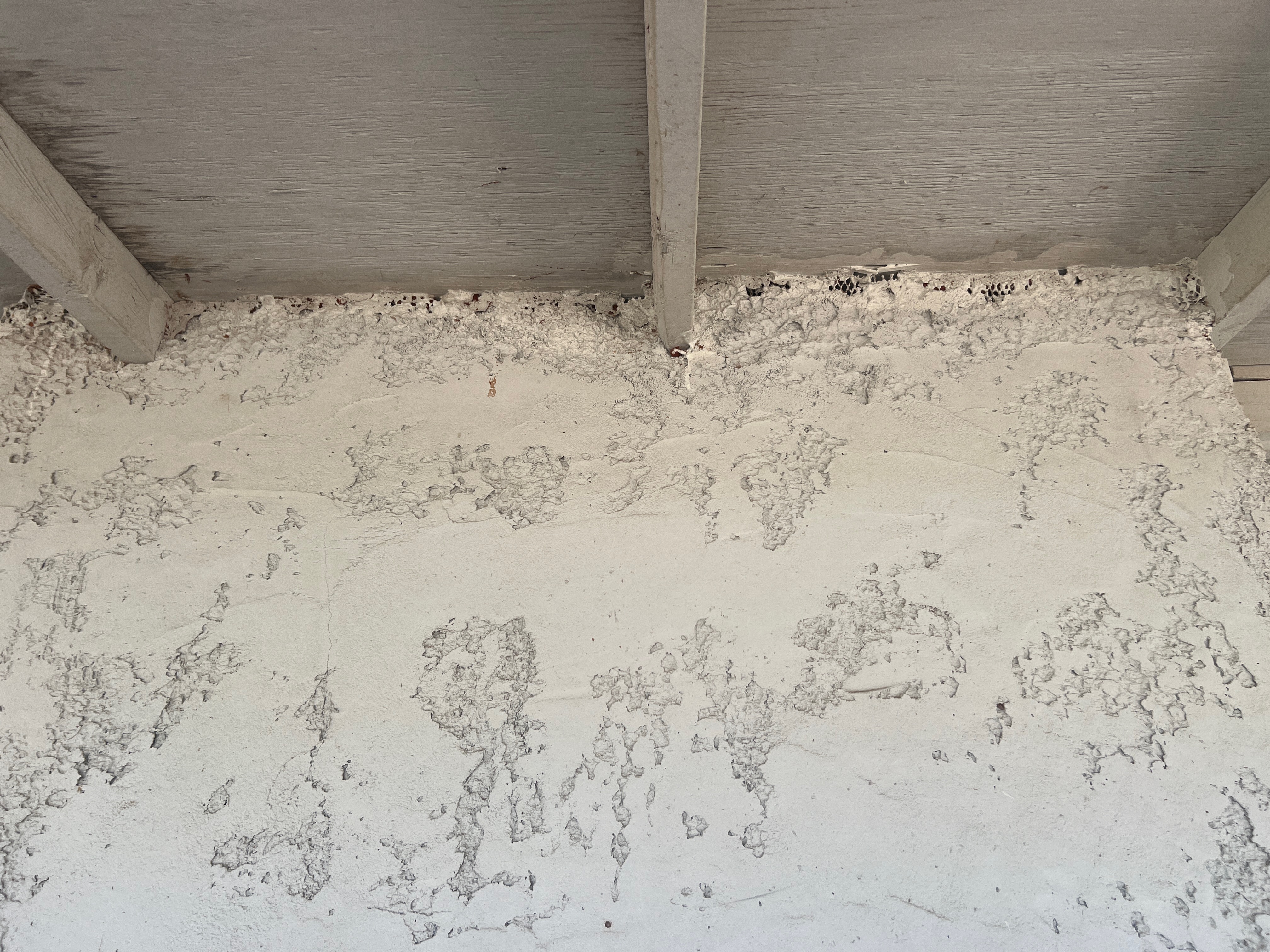there are gaps in stucco here where fireplace goes thru roof just needs sealing or paint lathe is exposed