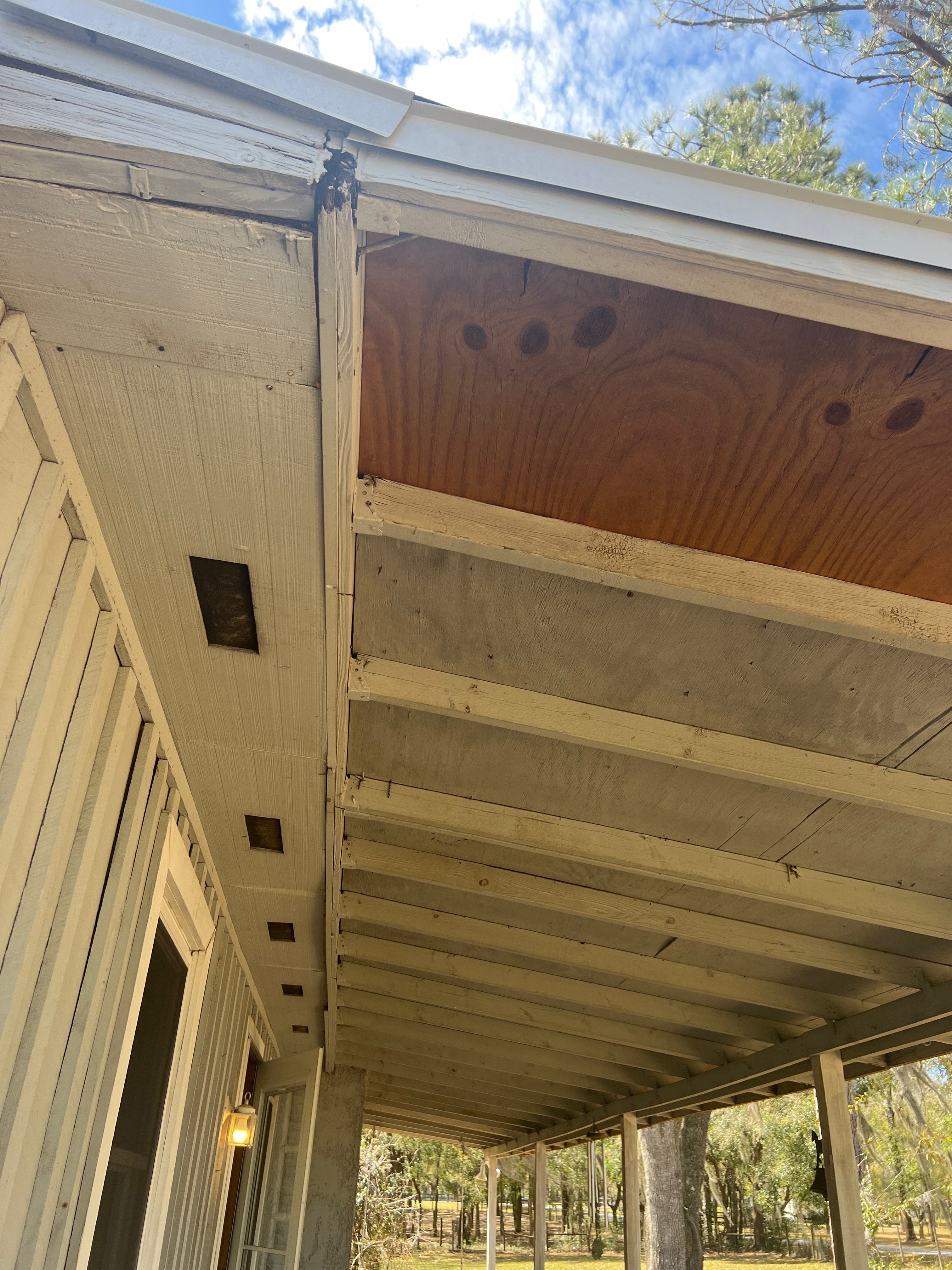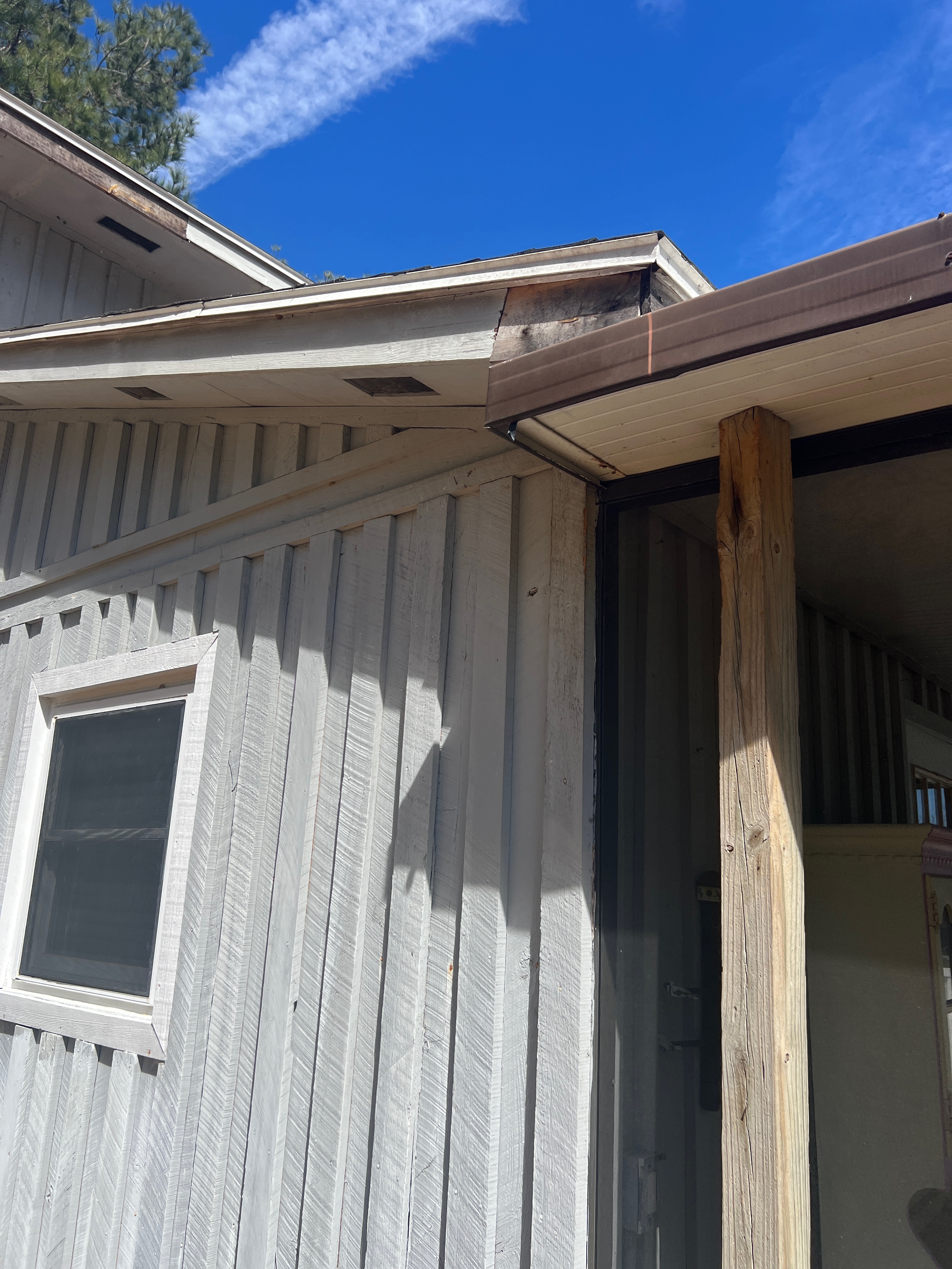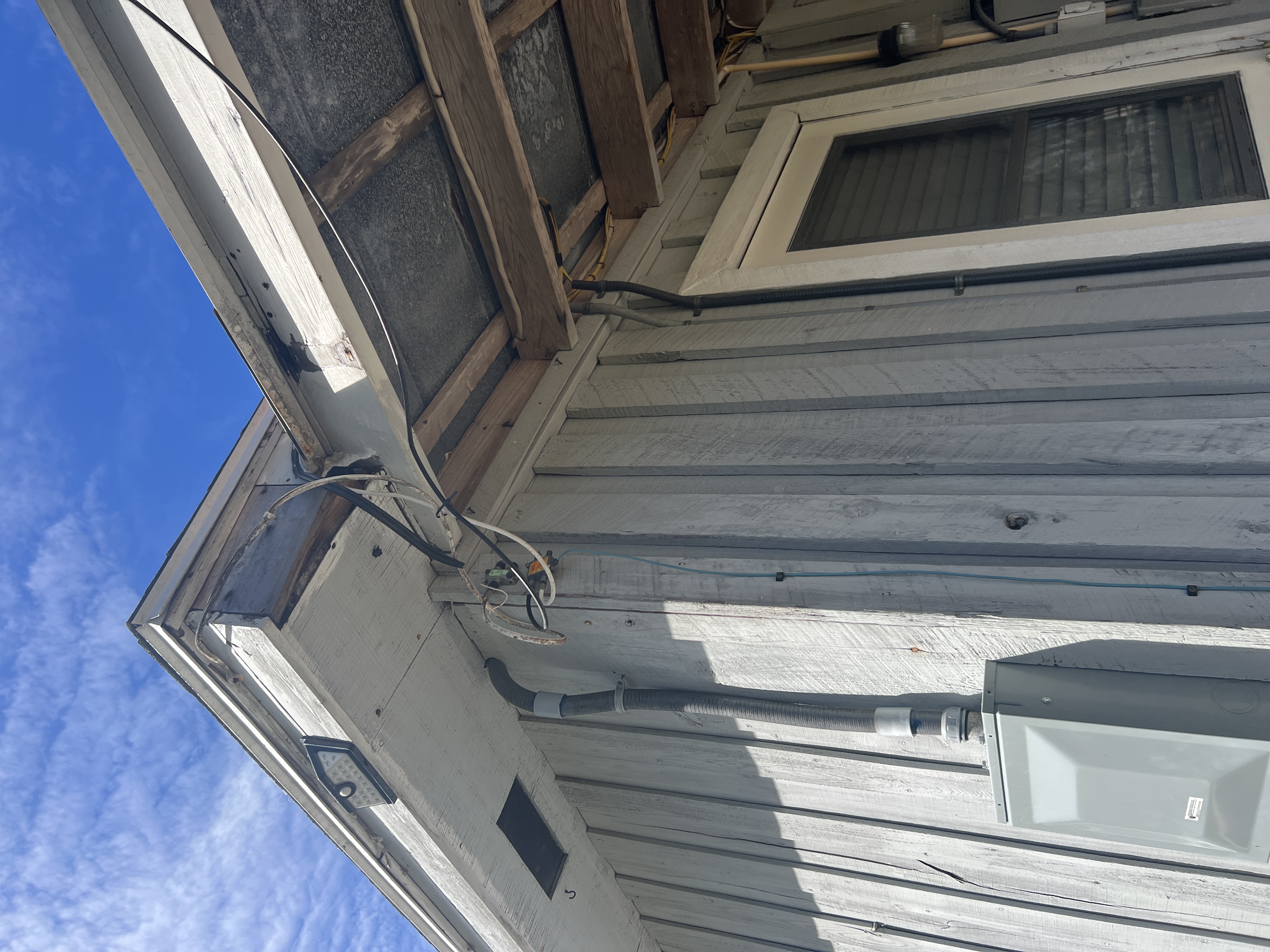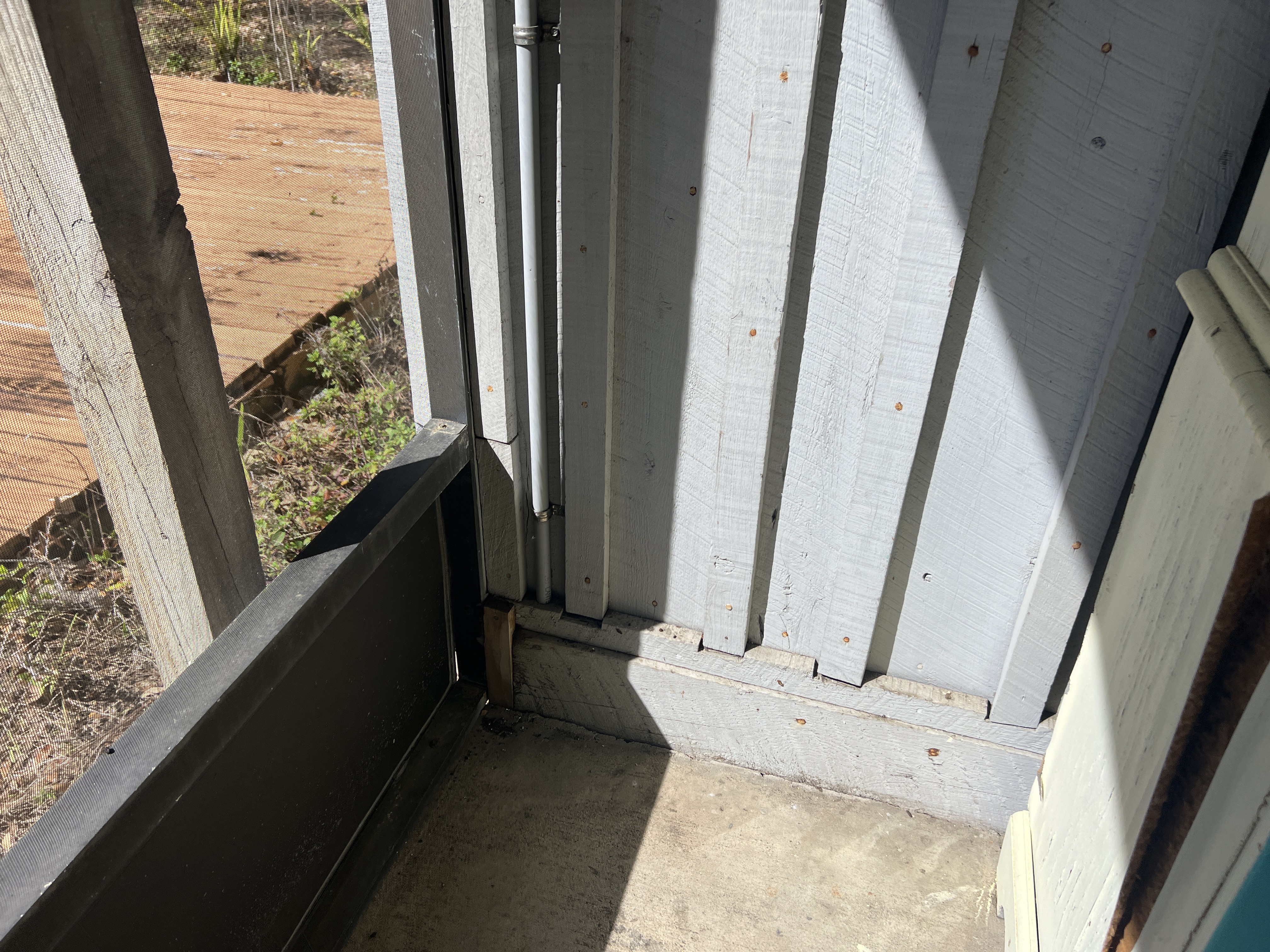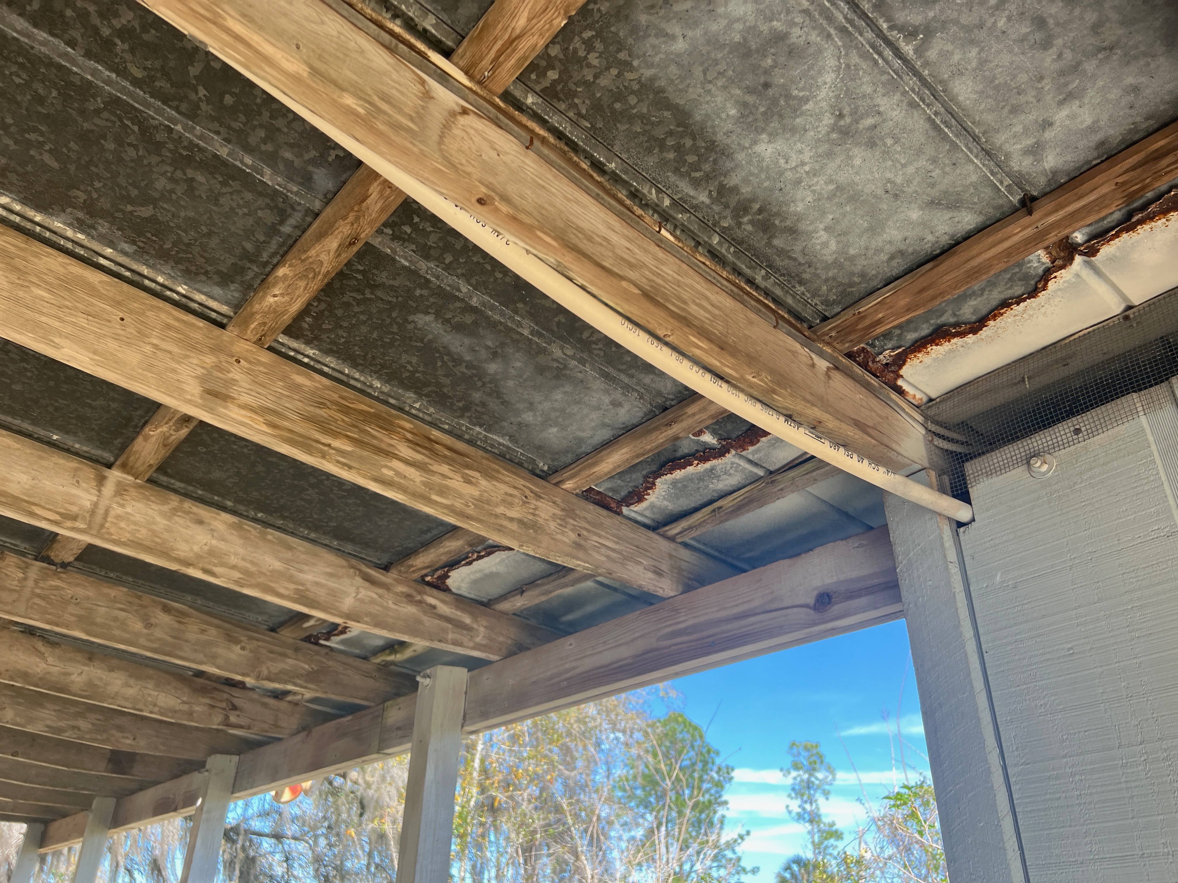 there are gaps in stucco here where fireplace goes thru roof just needs sealing or paint lathe is exposed