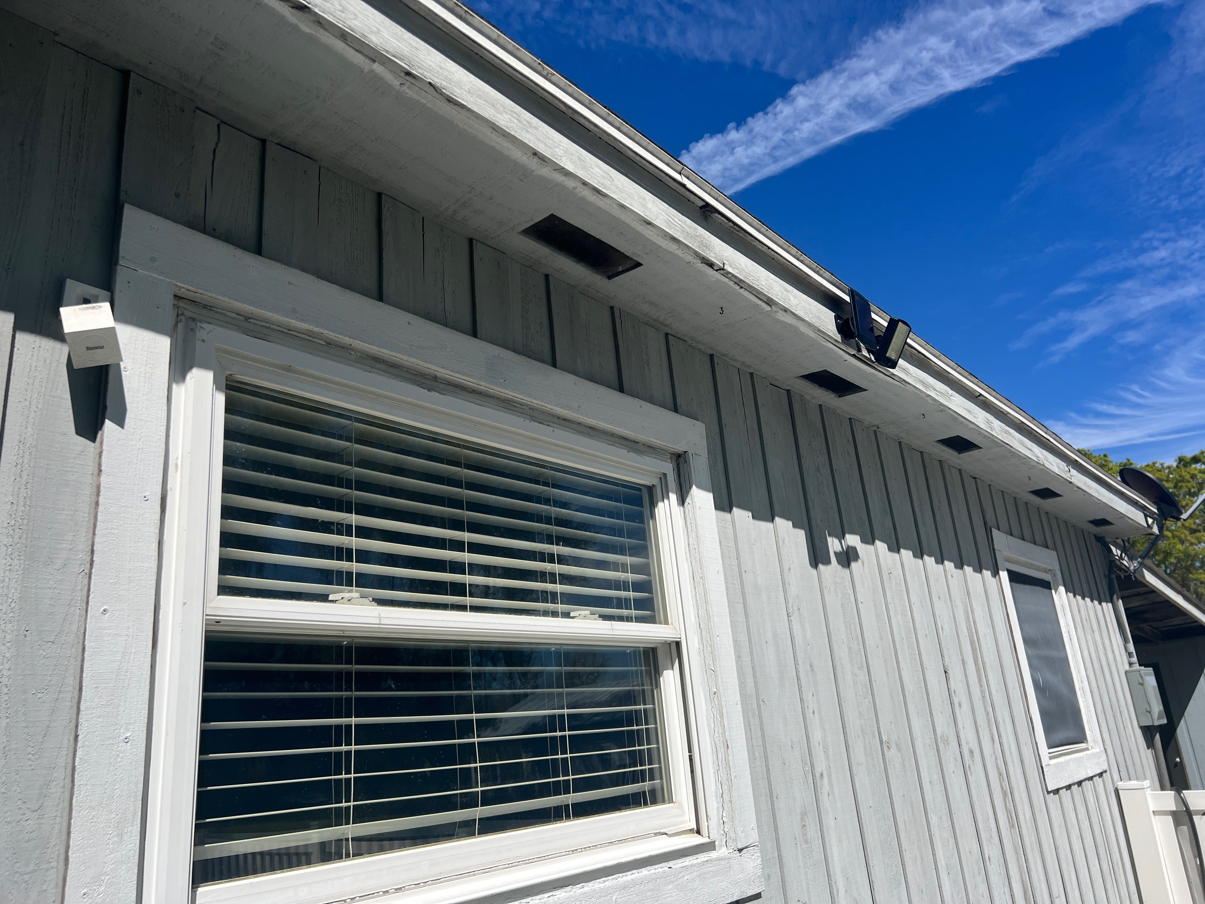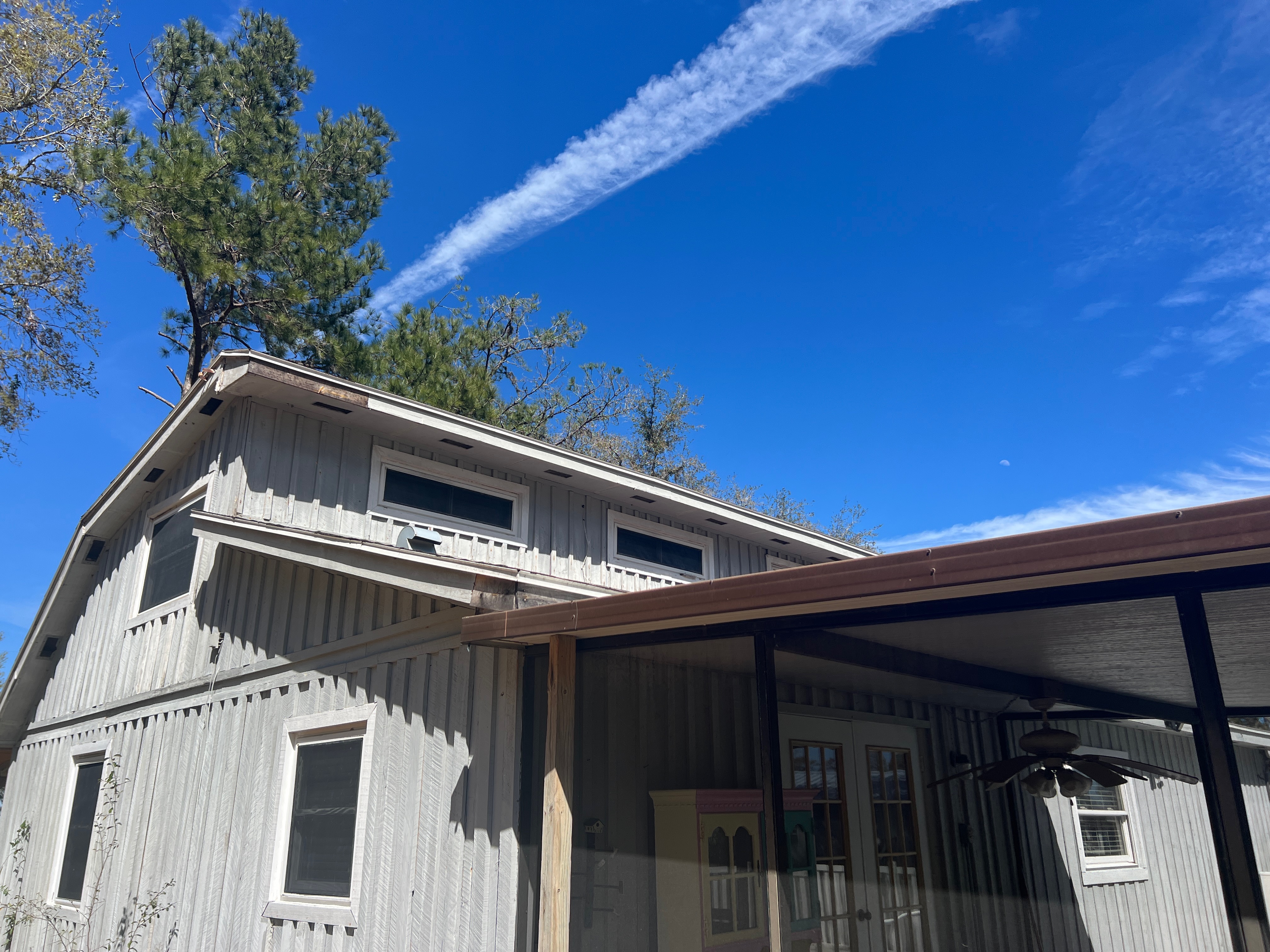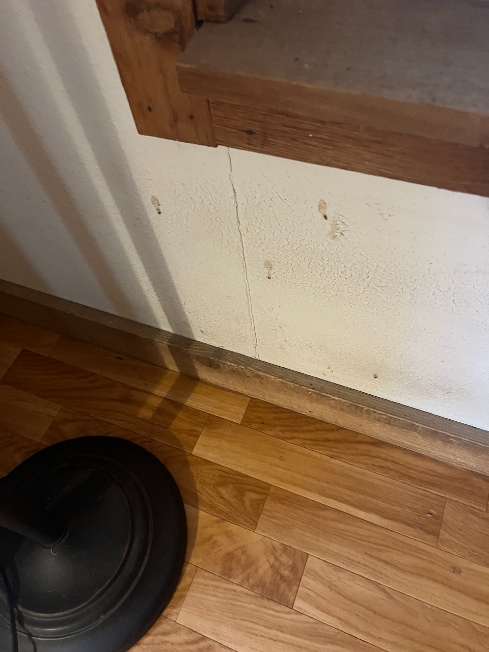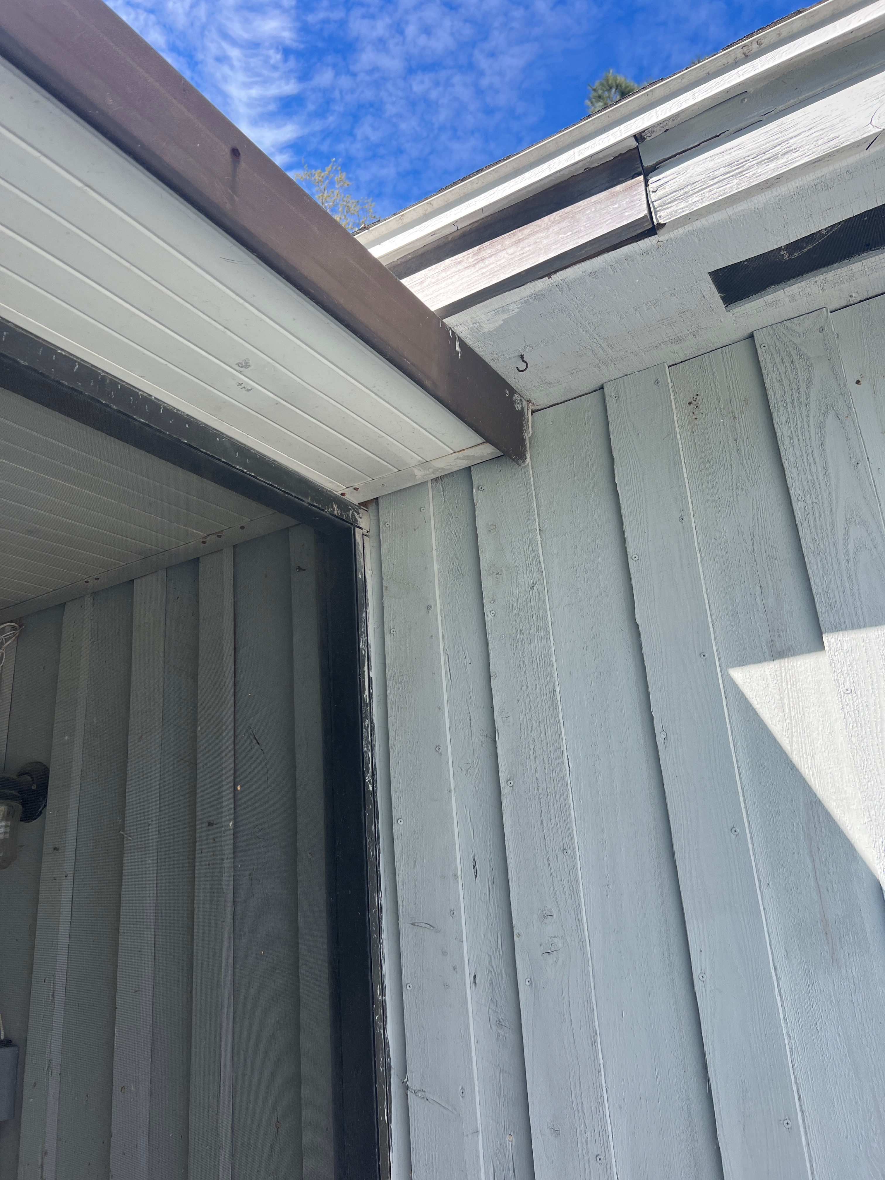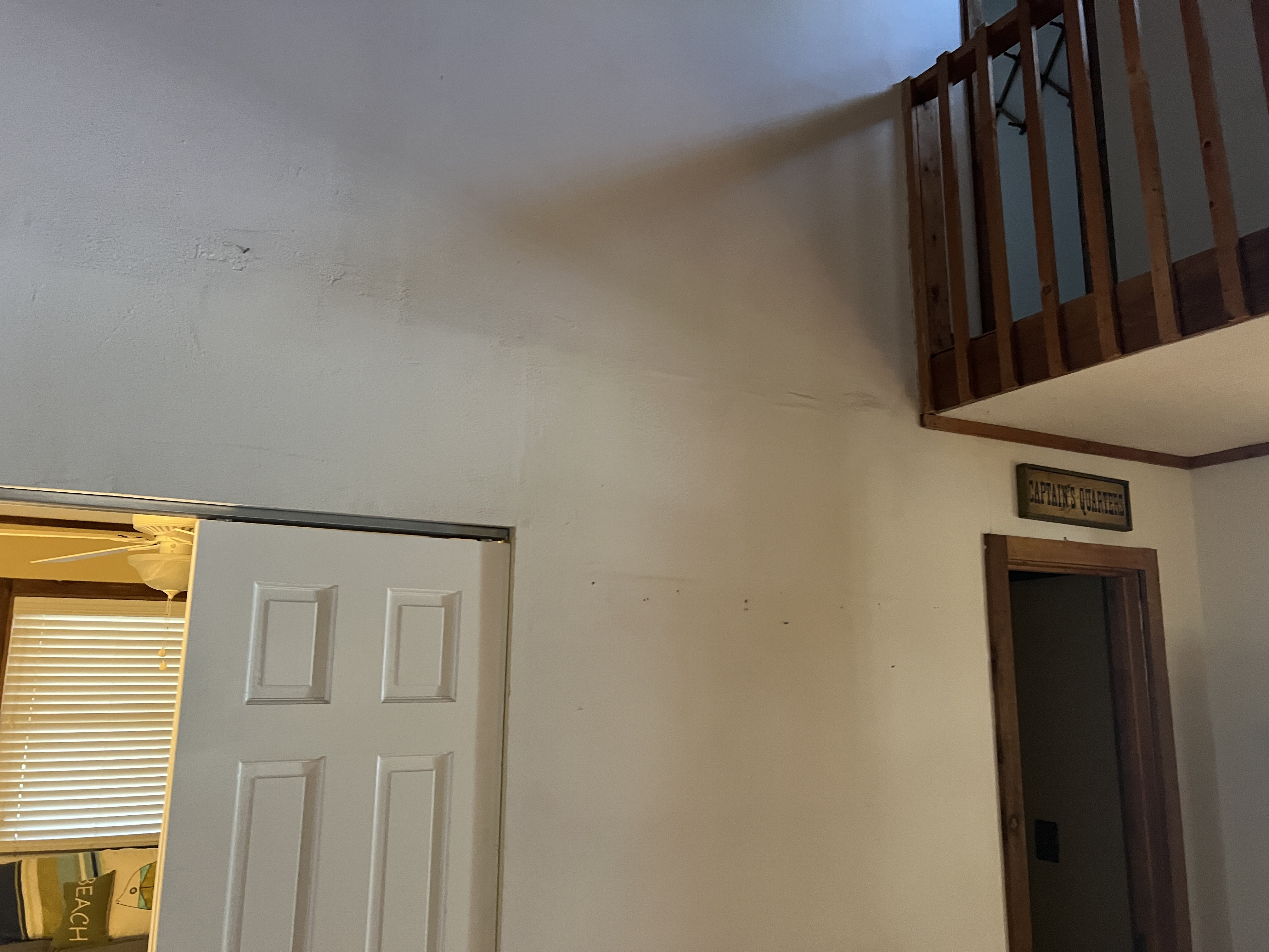 there are gaps in stucco here where fireplace goes thru roof just needs sealing or paint lathe is exposed