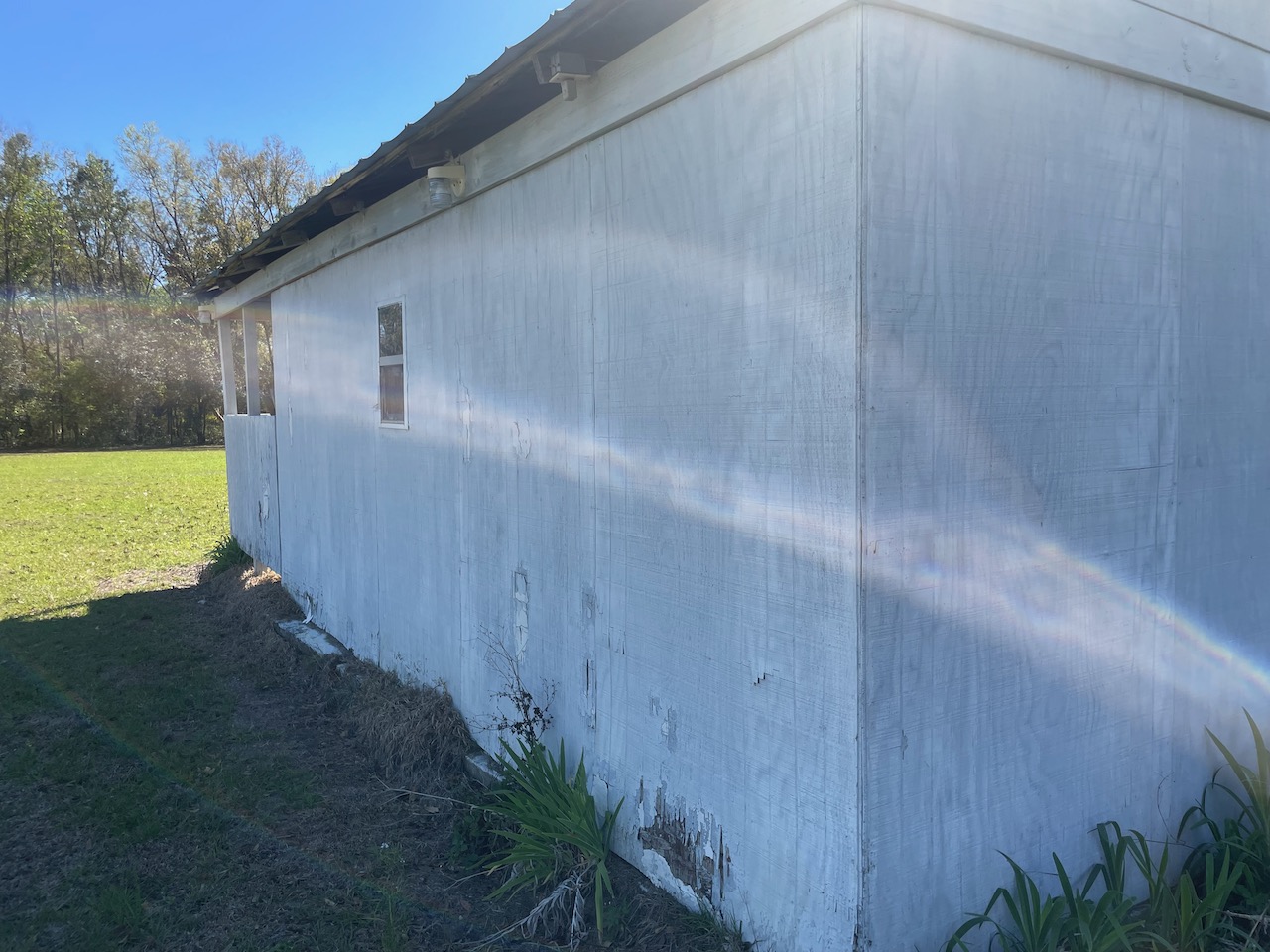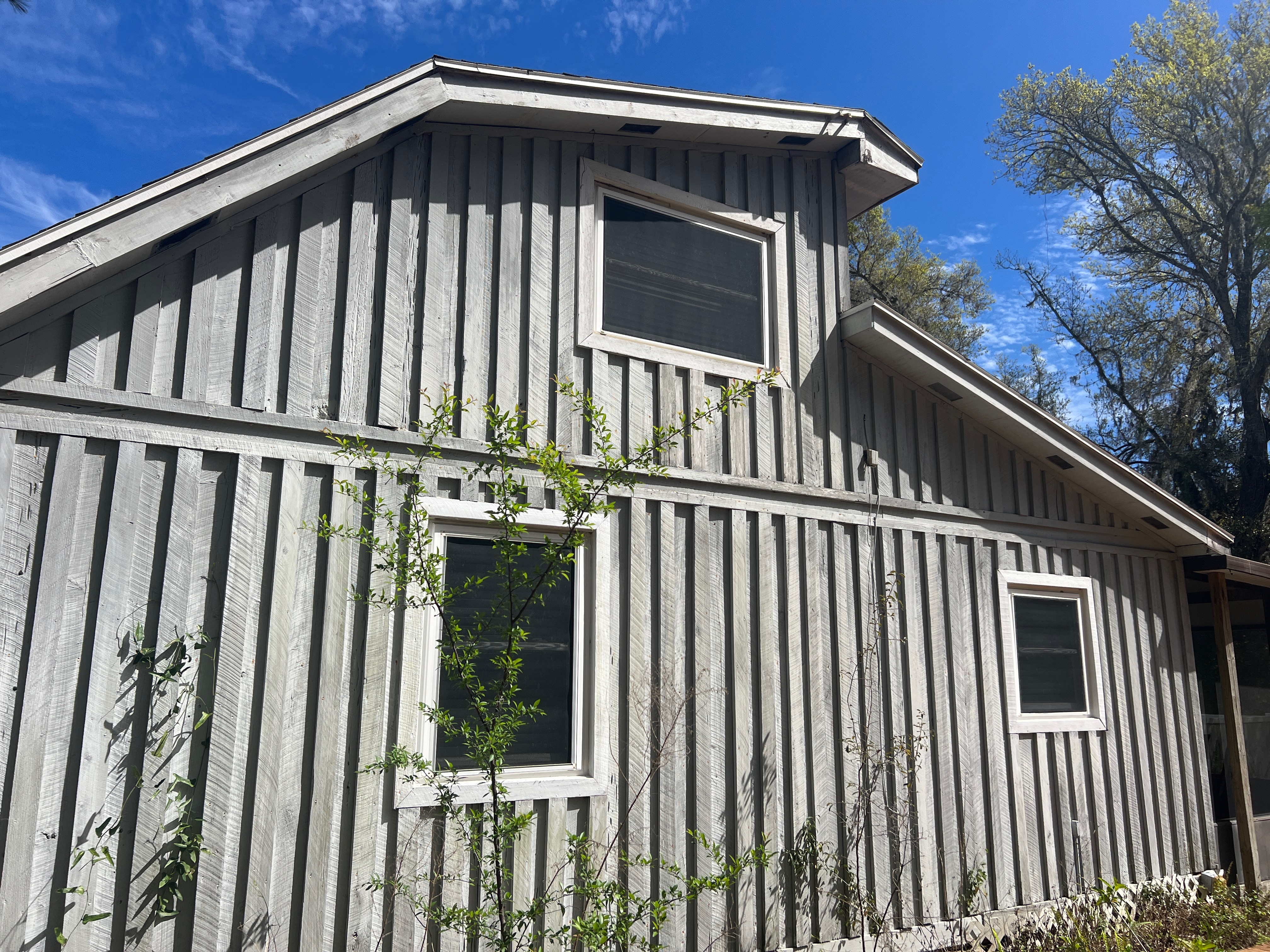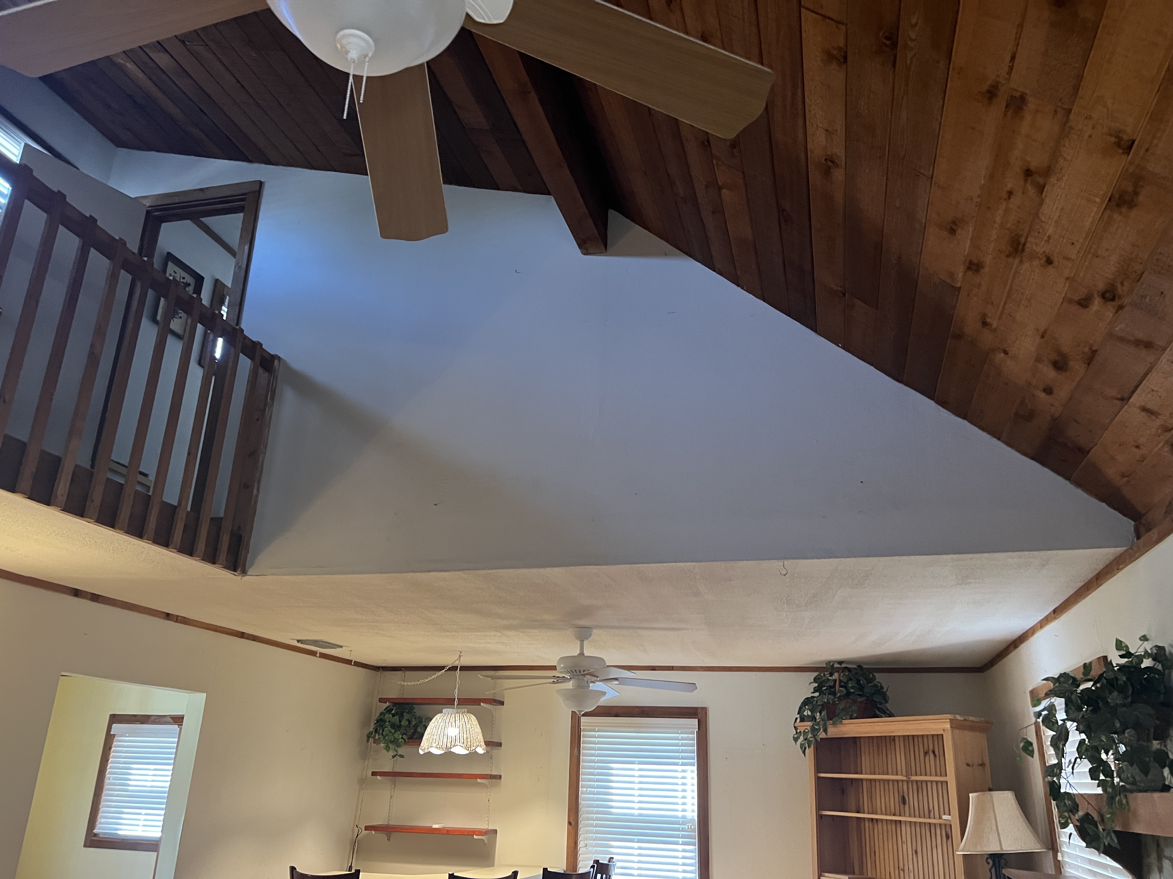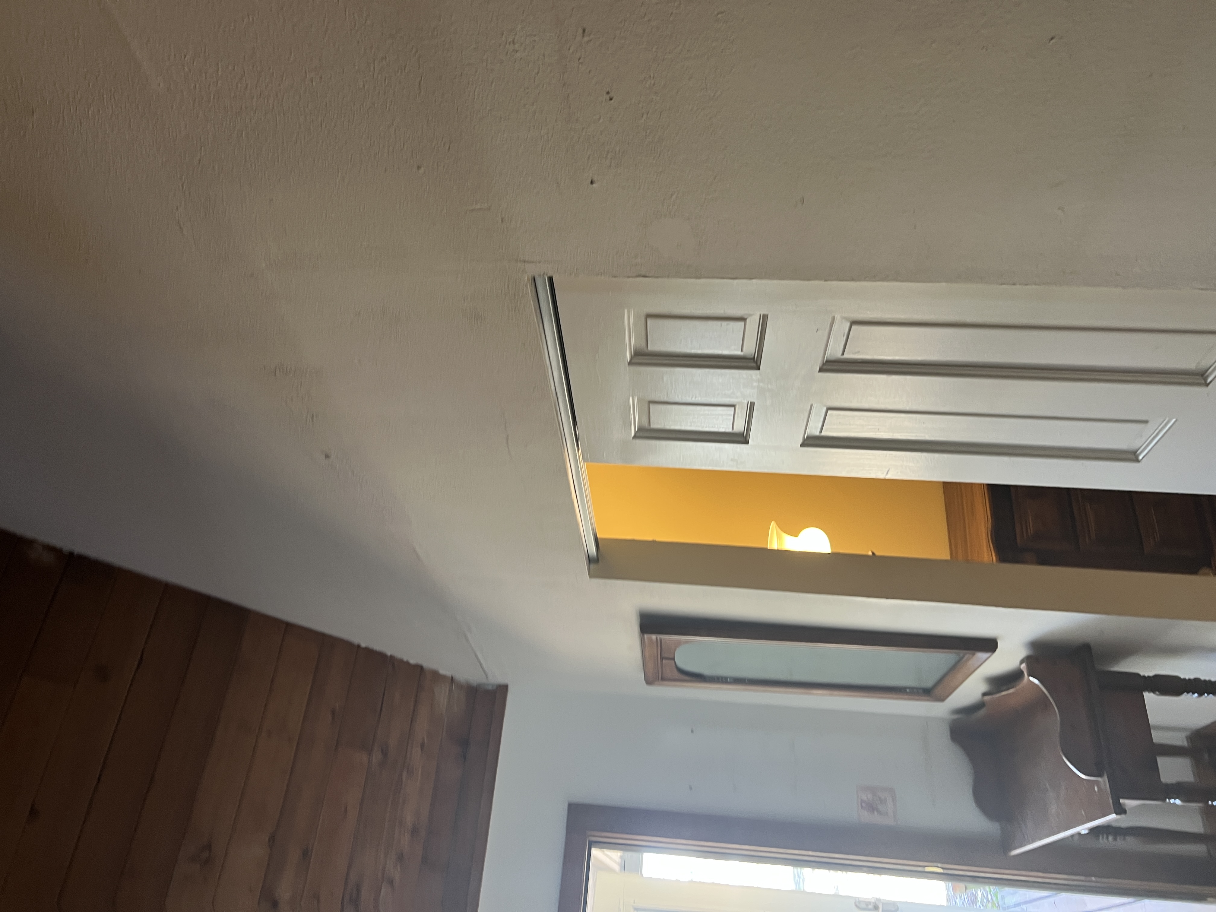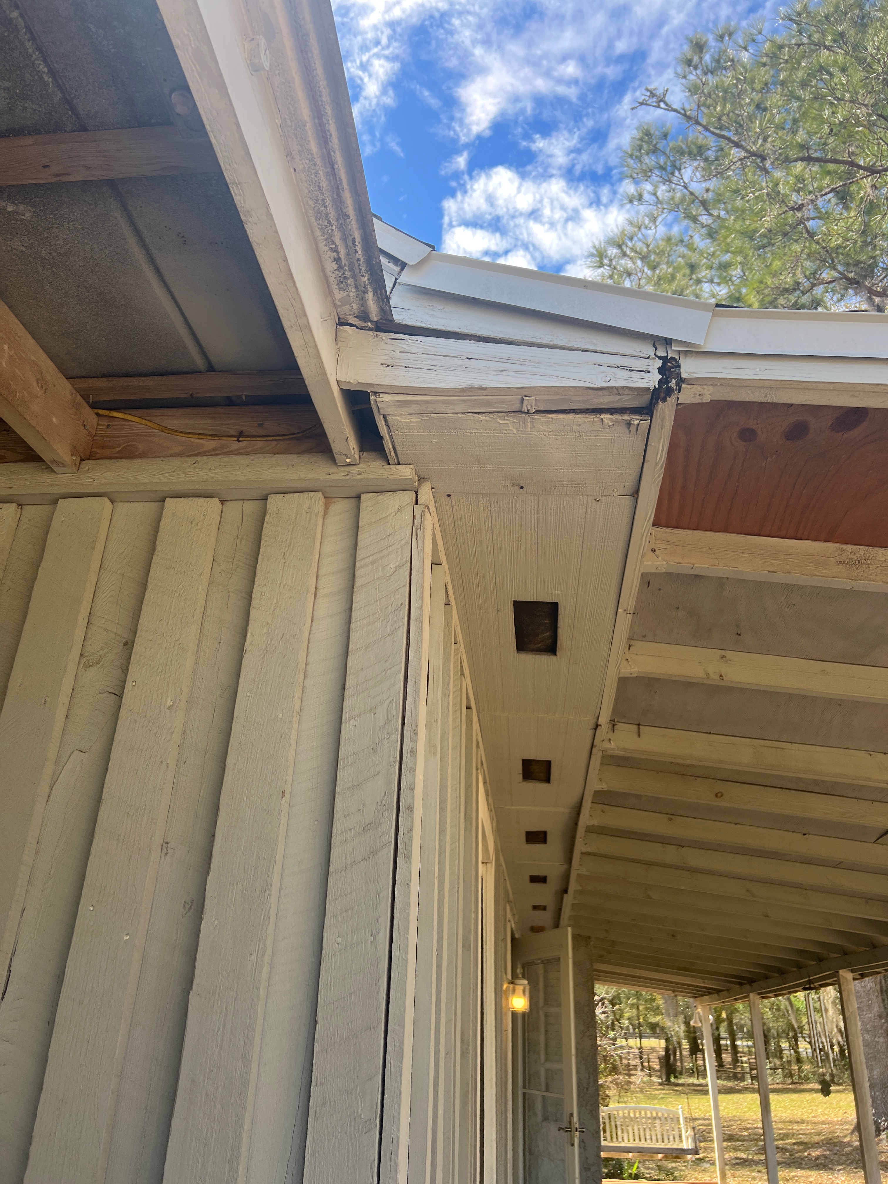 there are gaps in stucco here where fireplace goes thru roof just needs sealing or paint lathe is exposed