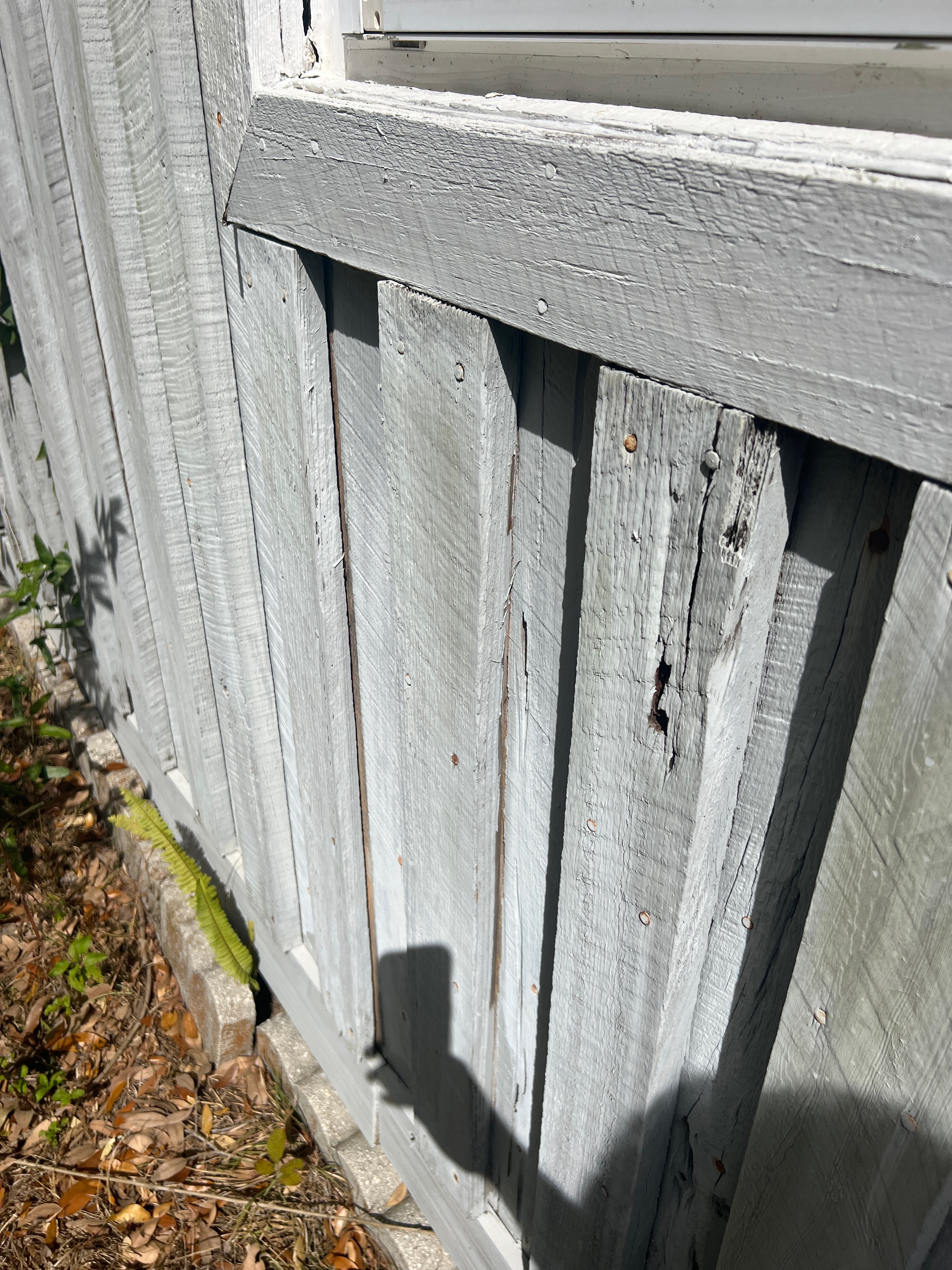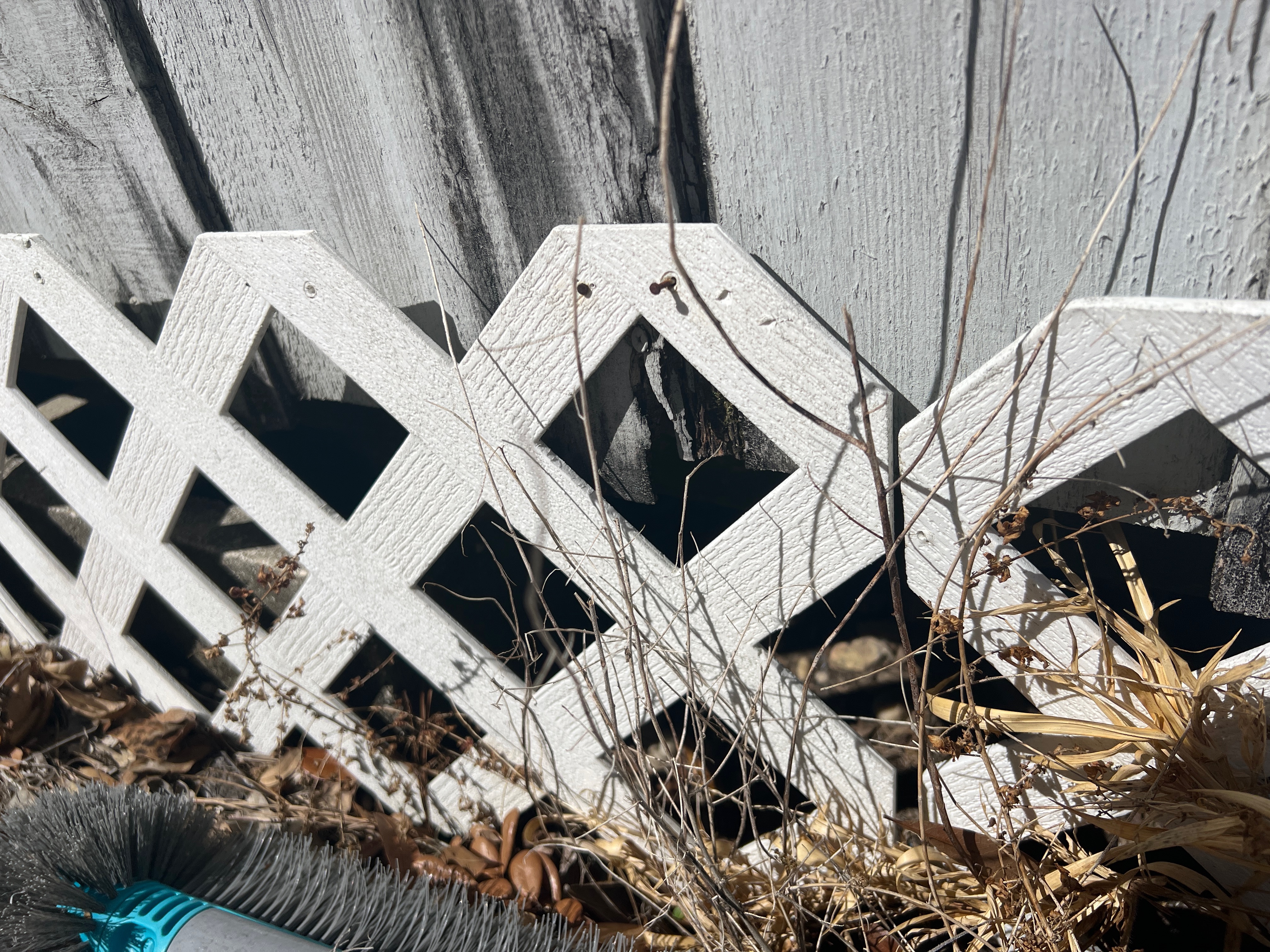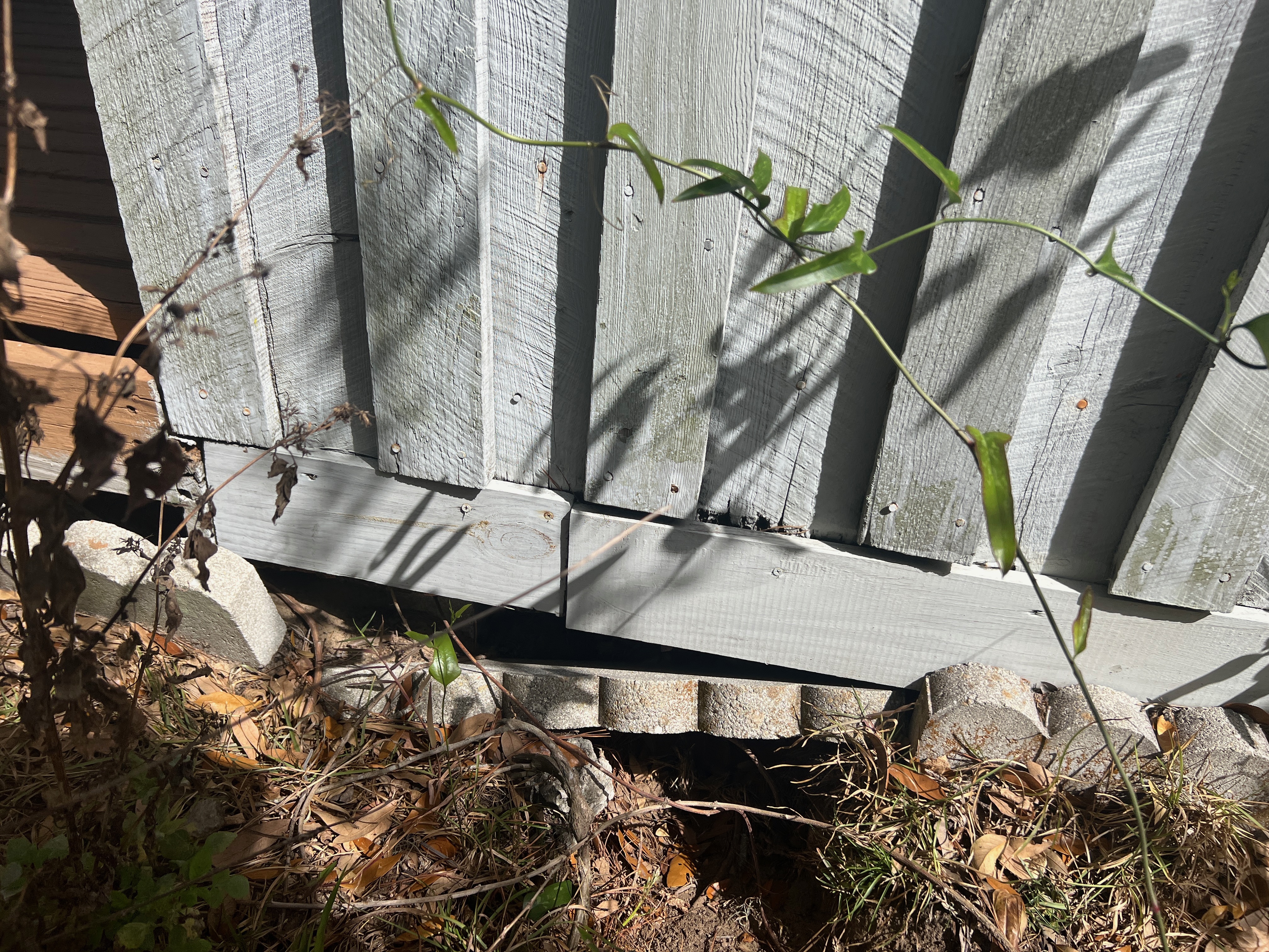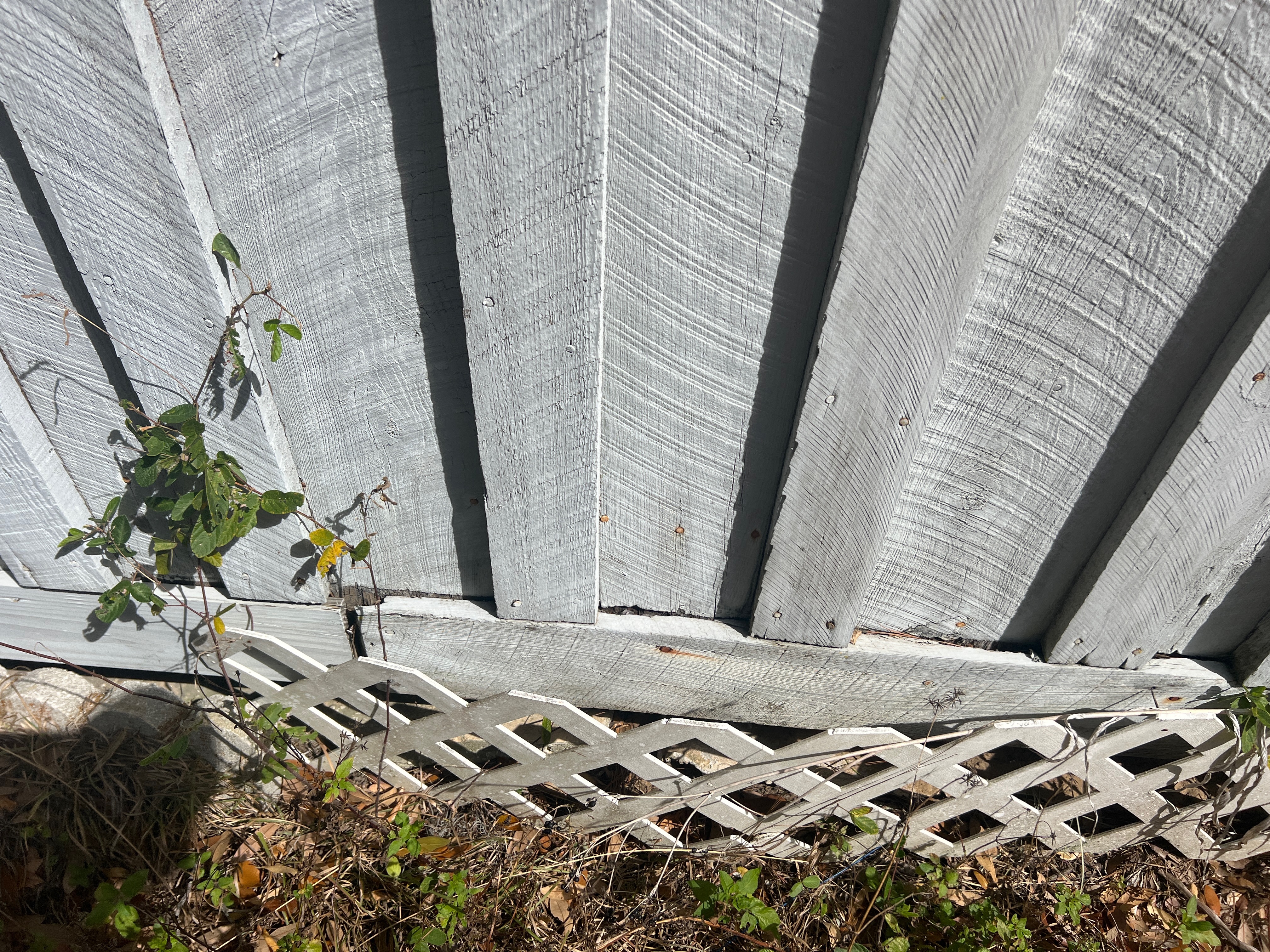 some rotted wood exposed along the bottom of this wall you can cap but would need to remove the trellis
