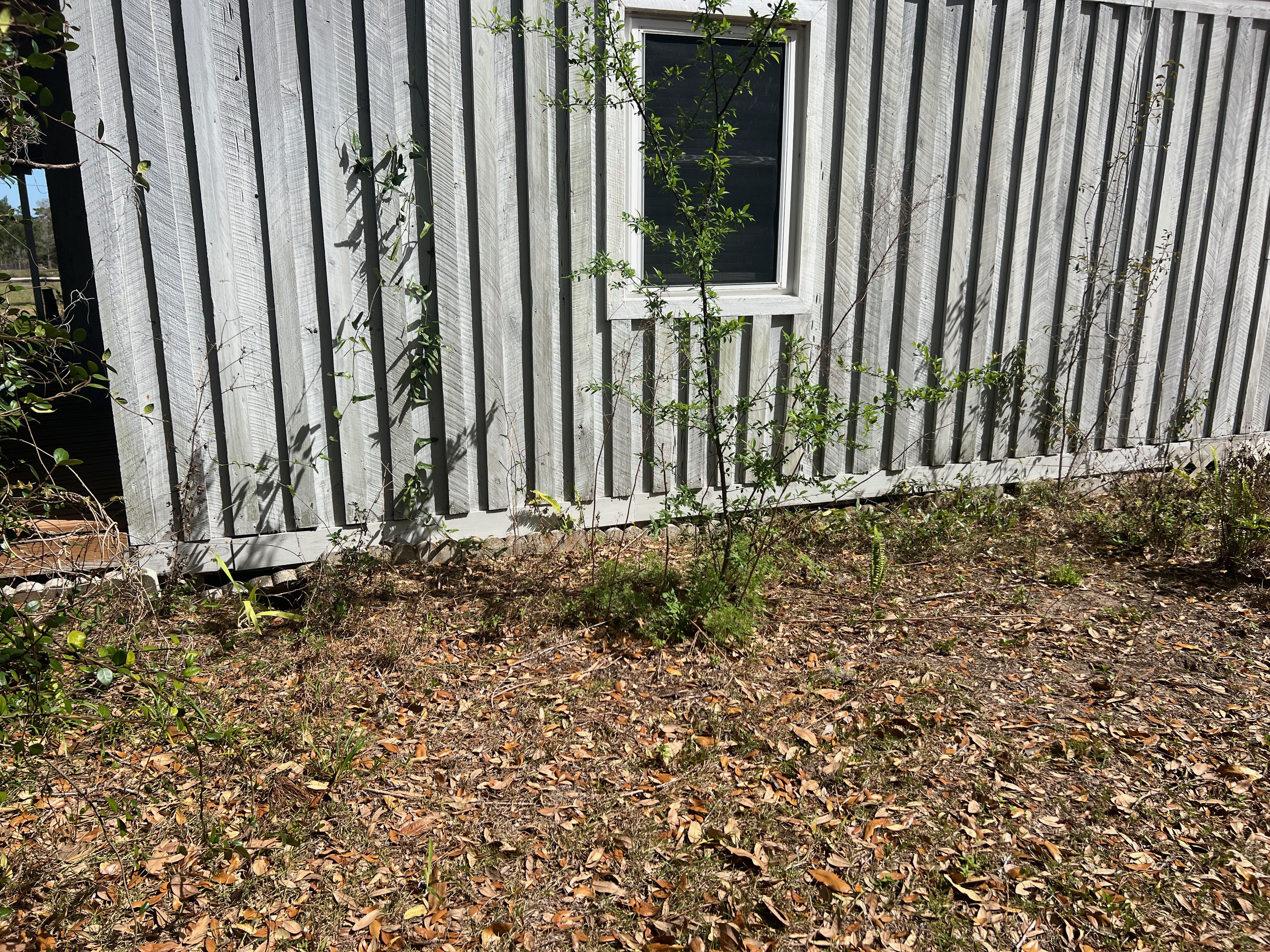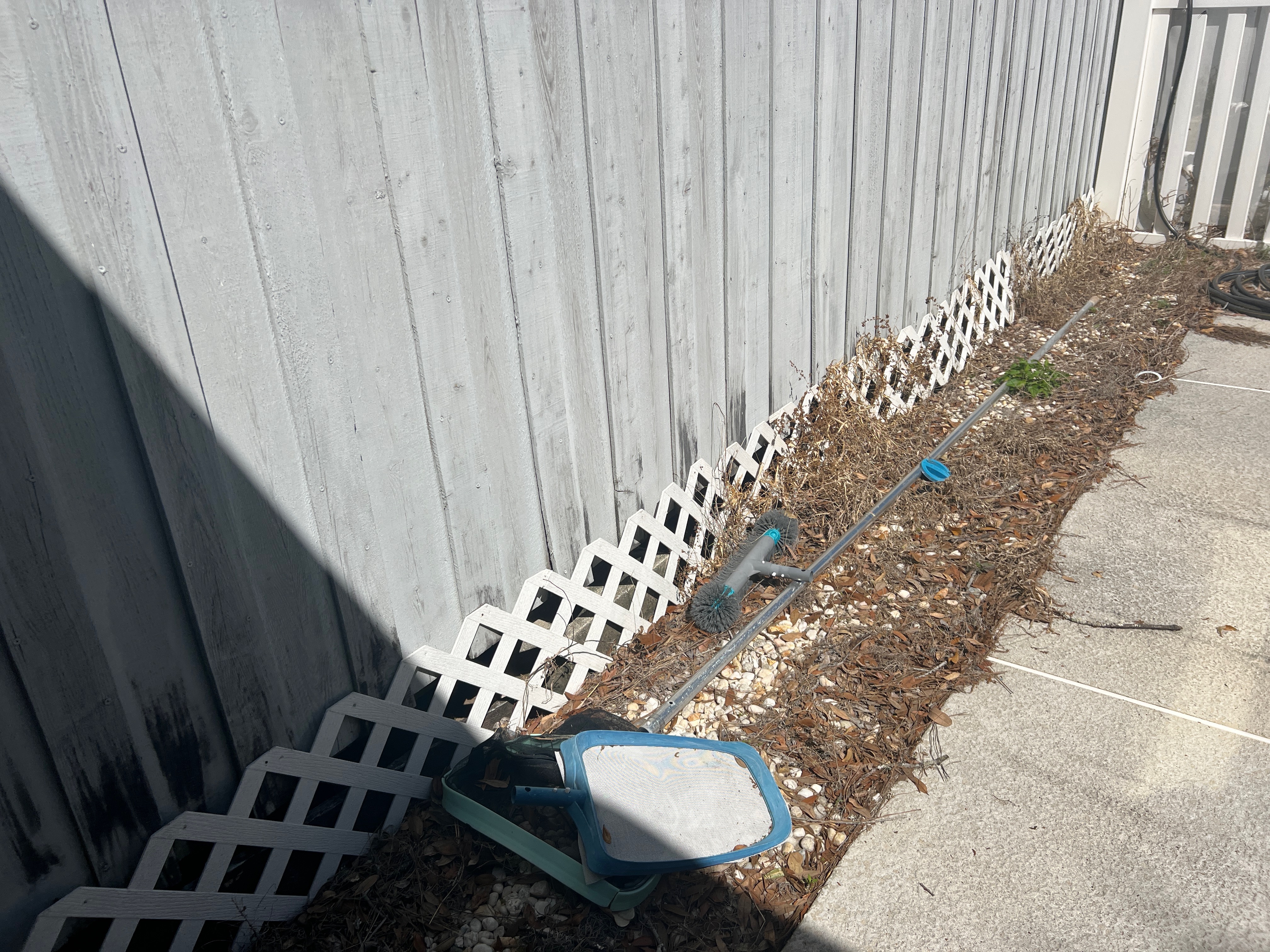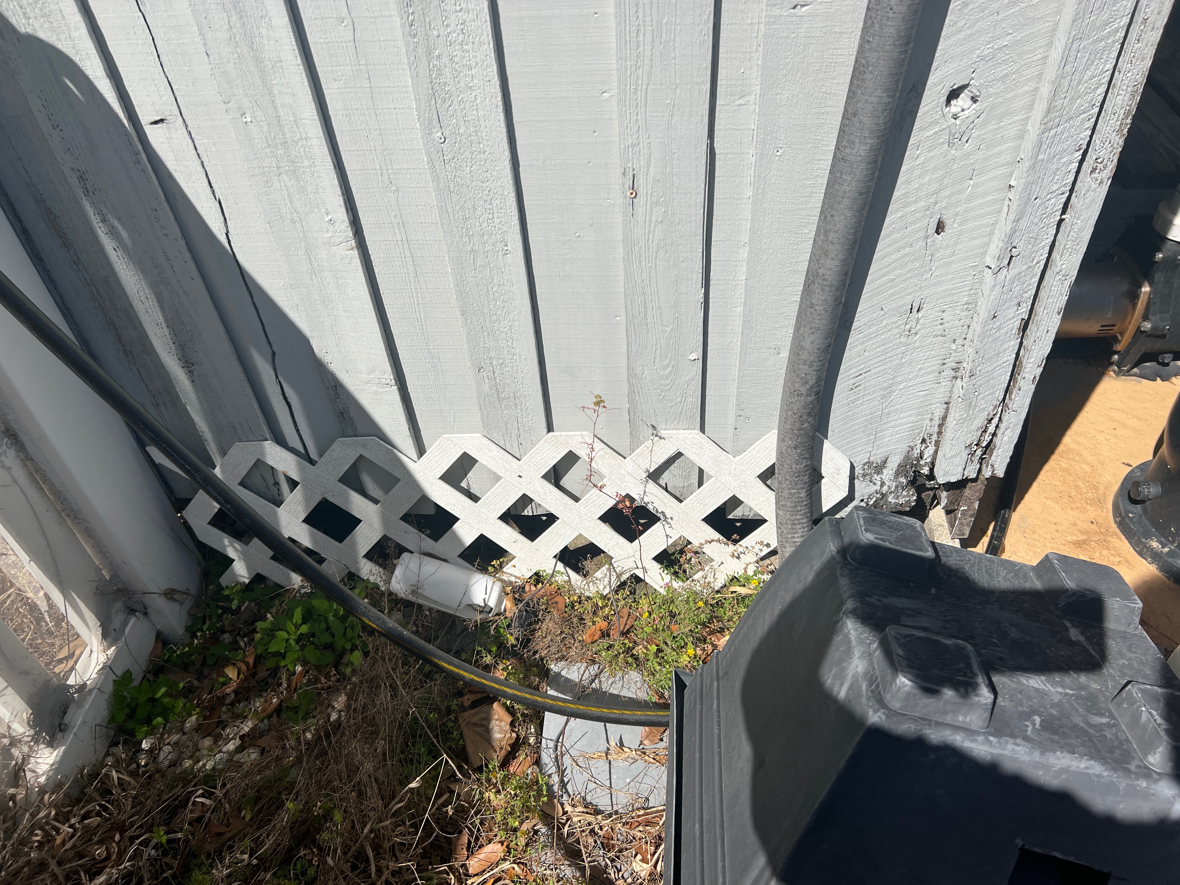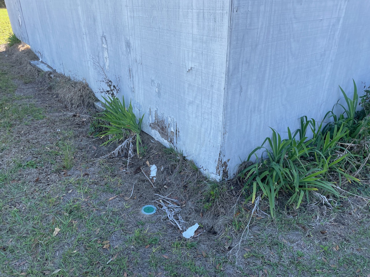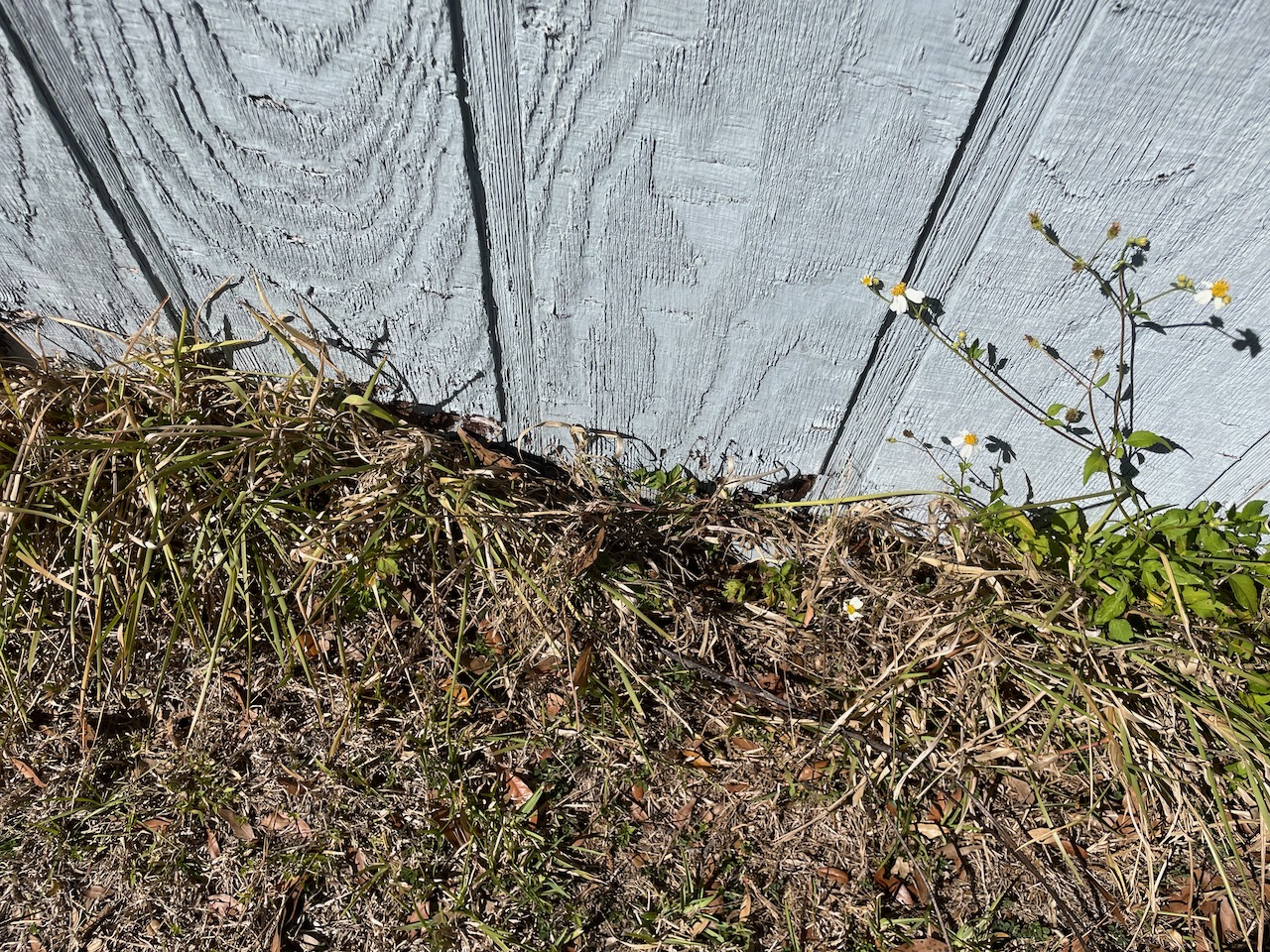 some rotted wood exposed along the bottom of this wall you can cap but would need to remove the trellis