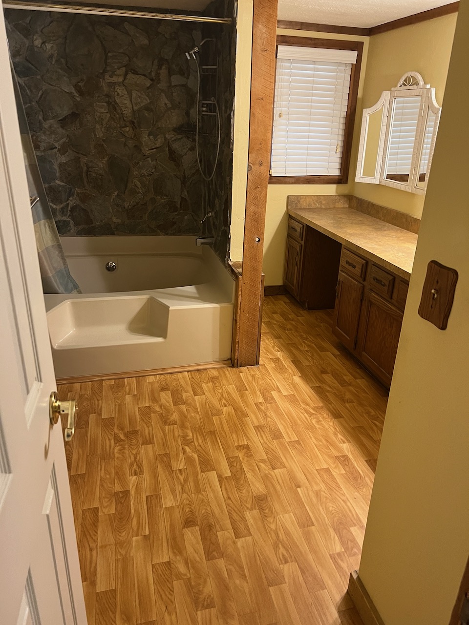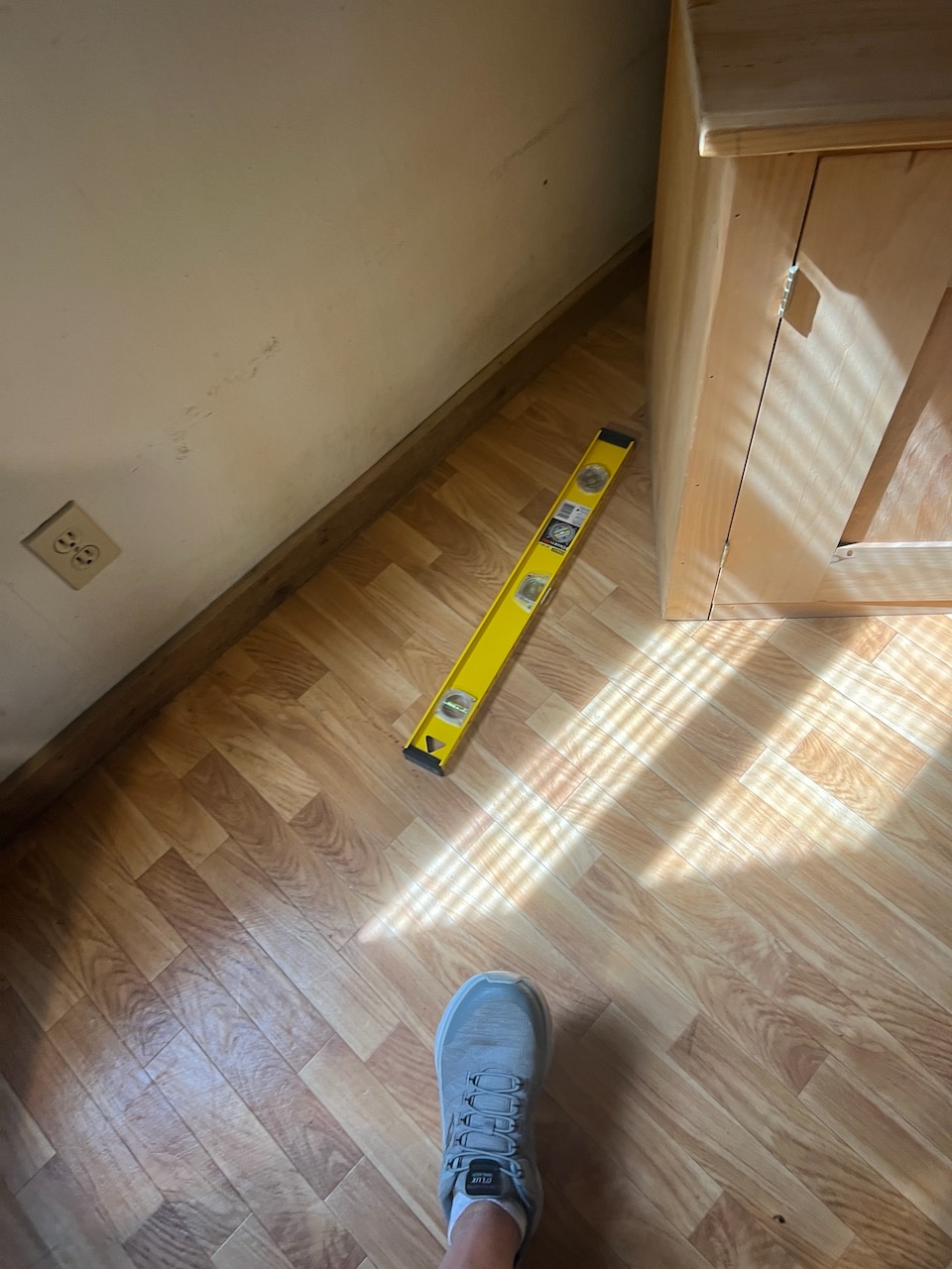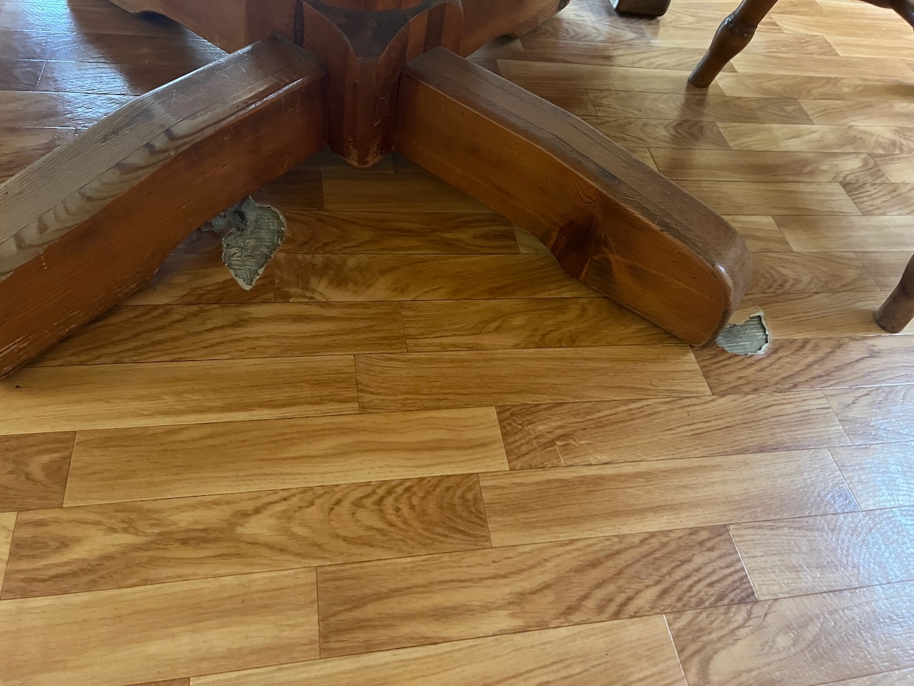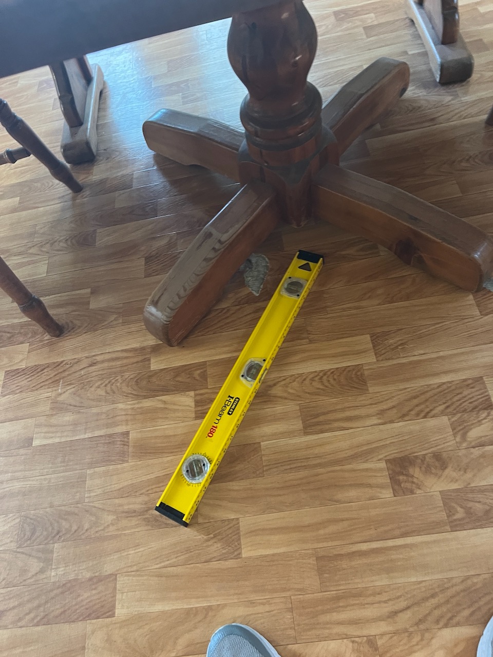 the decking mostly on the right side is loose or coming up and the front facing beam under the desk also bows